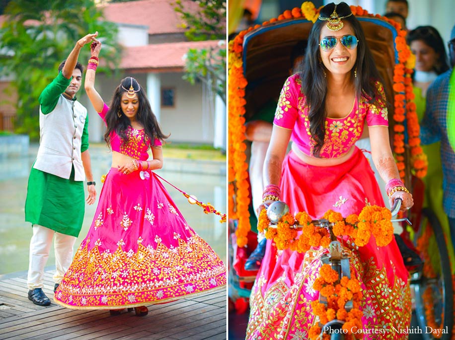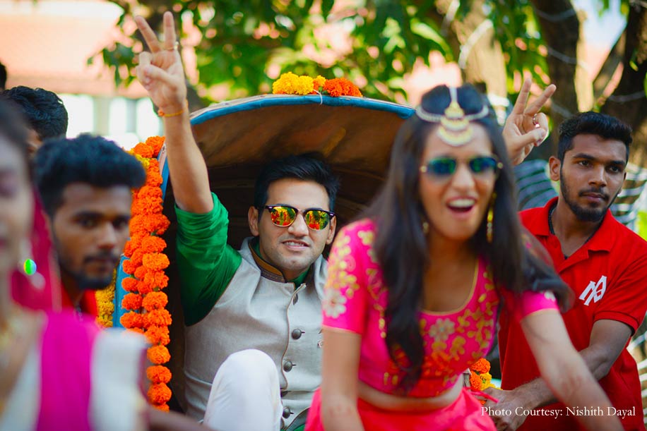 “All the other functions that followed were held at Radisson Blu Resort & Spa in Alibaug. We had a mehndi function in the morning and I got my mehndi applied a day in advance so I could enjoy dancing with our guests at the function. For our entry, I wanted something quirky, so I drove a bicycle with Vishal in the rickshaw. Vishal and I danced through the entire function.”