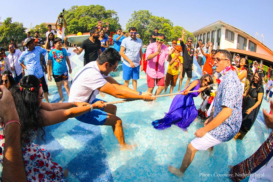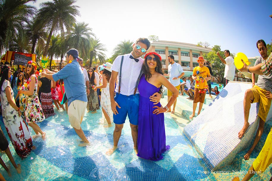 “The next day we had a pool party which turned out to be the highlight of the wedding. We had a bubble entry and a tug of war between the girls and the boys’ side. There was music, games, hula hoops, and dancing. At one point, most of the people were in the pool.”
