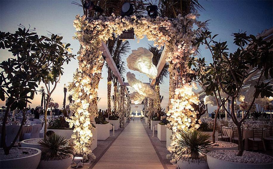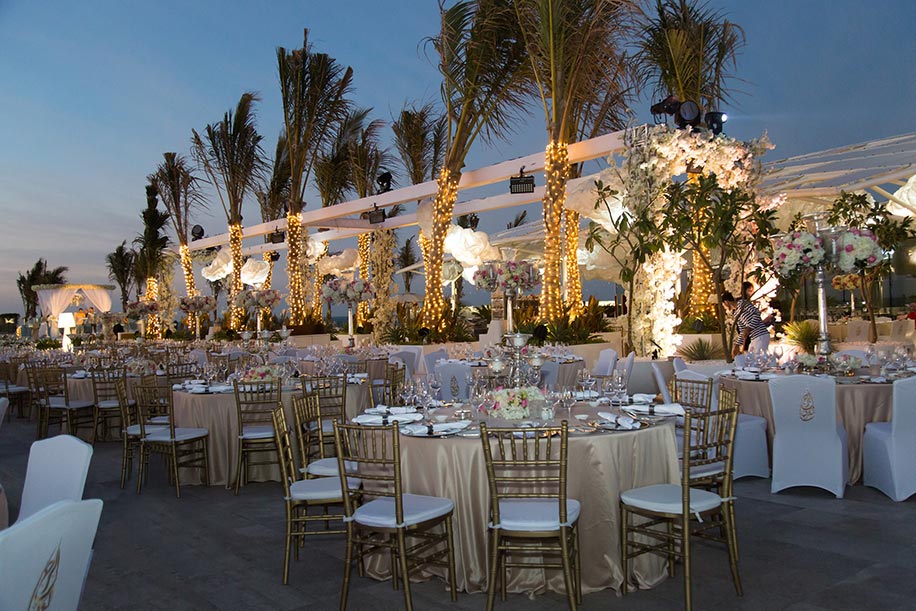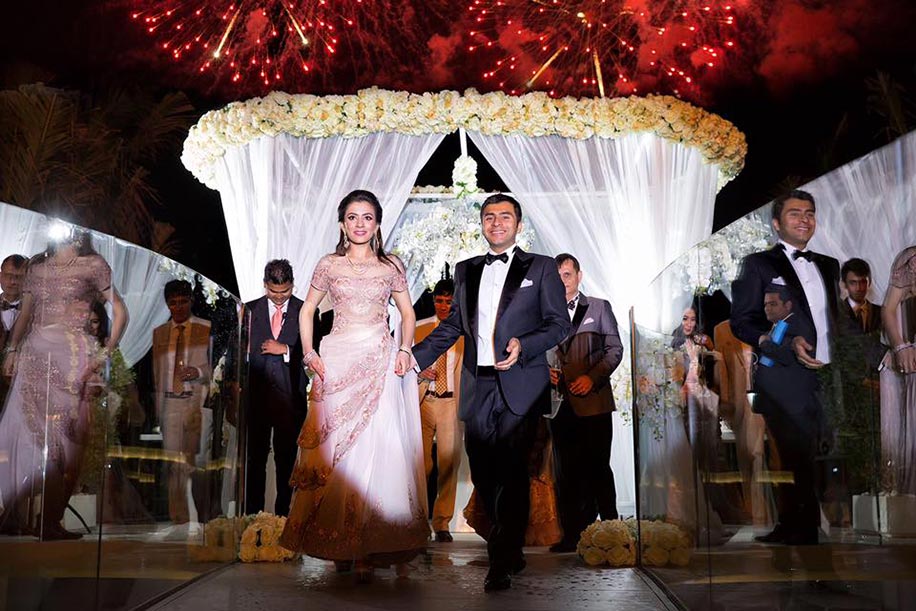 The couple opted for an outdoor wedding and chose the most exclusive seven star establishment of Dubai- The Burj Al Arab to exchange their vows. While the cocktail party was held at the Marina Garden, the wedding reception was hosted on the topmost floor of the 56-storey hotel and afforded some breathtaking vistas of the futuristic city of Dubai.