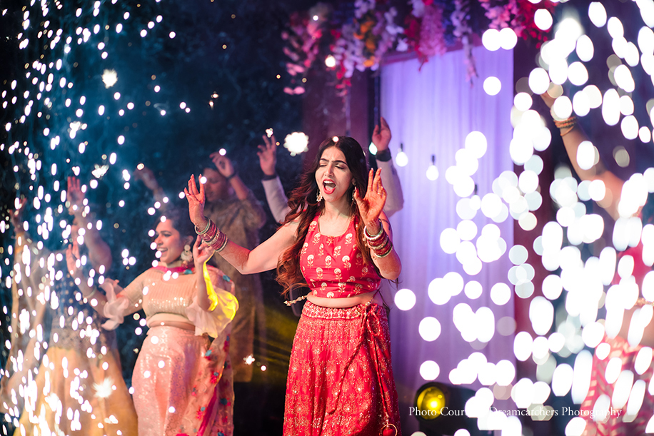 Stepping up the glamour stakes, the sangeet had everyone showing off their dance moves regardless of age. Aakriti says, “With a ‘Bling it up’ theme, we ensured that every single attendee dazzled under the spotlight. As the venue lit up under the glow of numerous lights, we made merry and danced to our favorite tracks!”