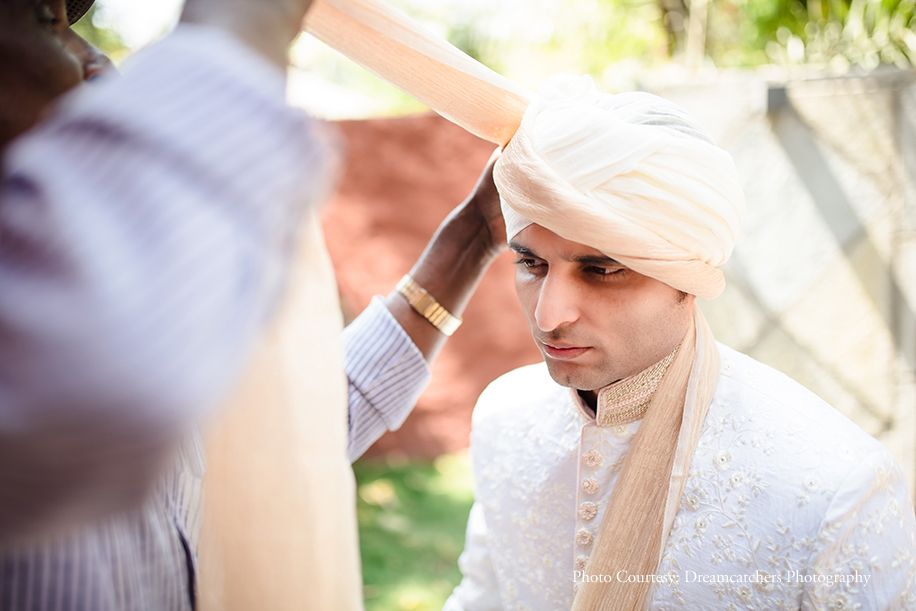 Groom’s Outfits: Manyavar (Mehndi), Kora (Wedding and Reception)