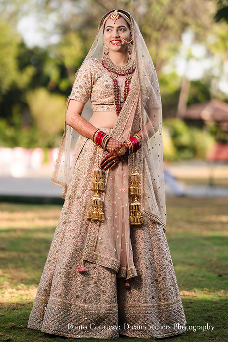 This bride chose to keep it light and breezy with a refreshing ‘no makeup’ look and a dainty pale pink lehenga.