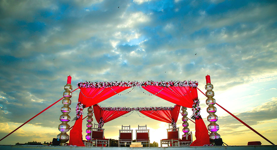 “The wedding was a very traditional one and our décor was in sync with that aesthetic. We had a magenta beachside mandap decorated with fresh flowers and pink lighting to add to the romance.