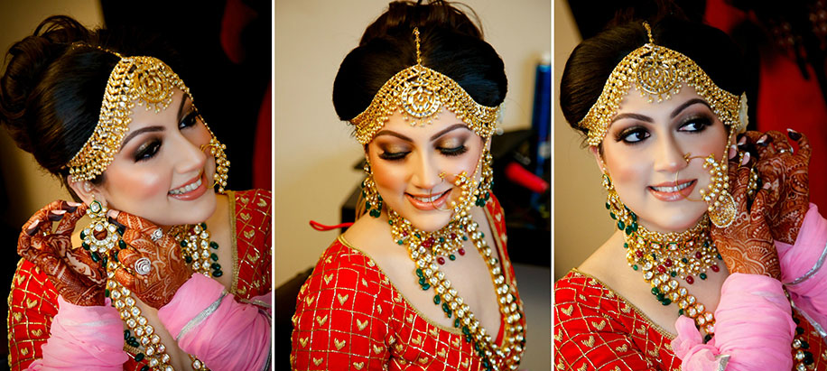 I accessorized with a Kundan necklace, thick gold matha patti and some gorgeous kaleerein. I wanted my makeup to be simple and Farah Shah from Dubai was a blessing. I’d planned on doing a few trials before I settled on a makeup artist but she was the first one I went to and I booked her right away. She did a fantastic job across all the functions. She also styled my hair, which looked fabulous at every event.”