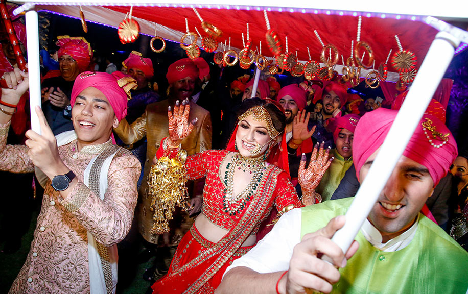 “We hosted the reception after the pheras. From the early days of planning we’d known we wanted to engage and celebrate with our guests and dance the night away. We had an LED dance floor and after our first dance as a couple we went around to meet our guests rather than them coming to meet us which was much appreciated by all.