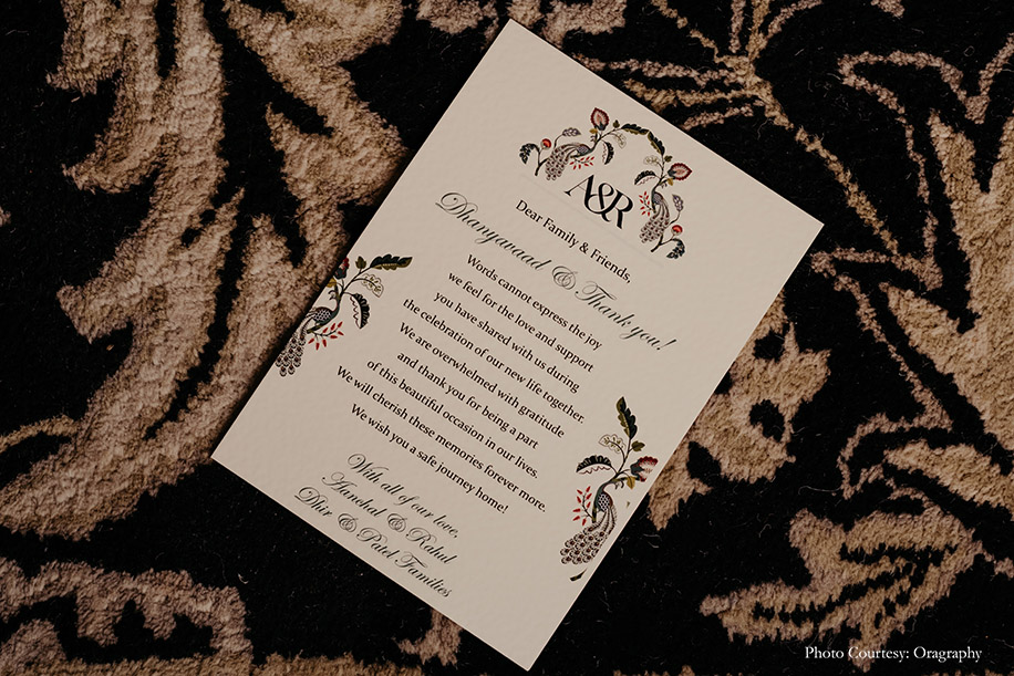 In their quest to hire vendors who would understand their vision and deliver incredible results, the duo came upon WeddingSutra Favorite – Izhaar by Core Designs who awed them with their designs and piqued the invitees’ curiosity. The happy bride gushes, “Izhaar by Core Designs understood our brief completely and delivered results that exceeded our expectations. Their designs are not only beautiful but they also expressed our personalities. Everyone who received the invites couldn’t help but appreciate their work.”