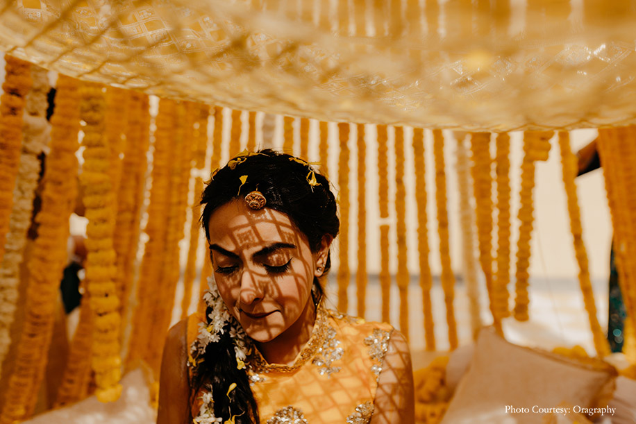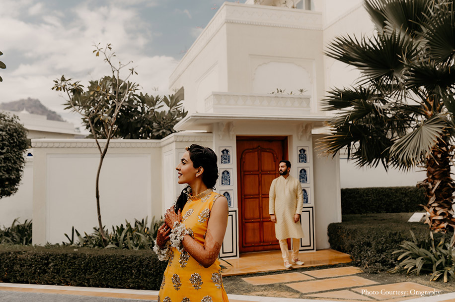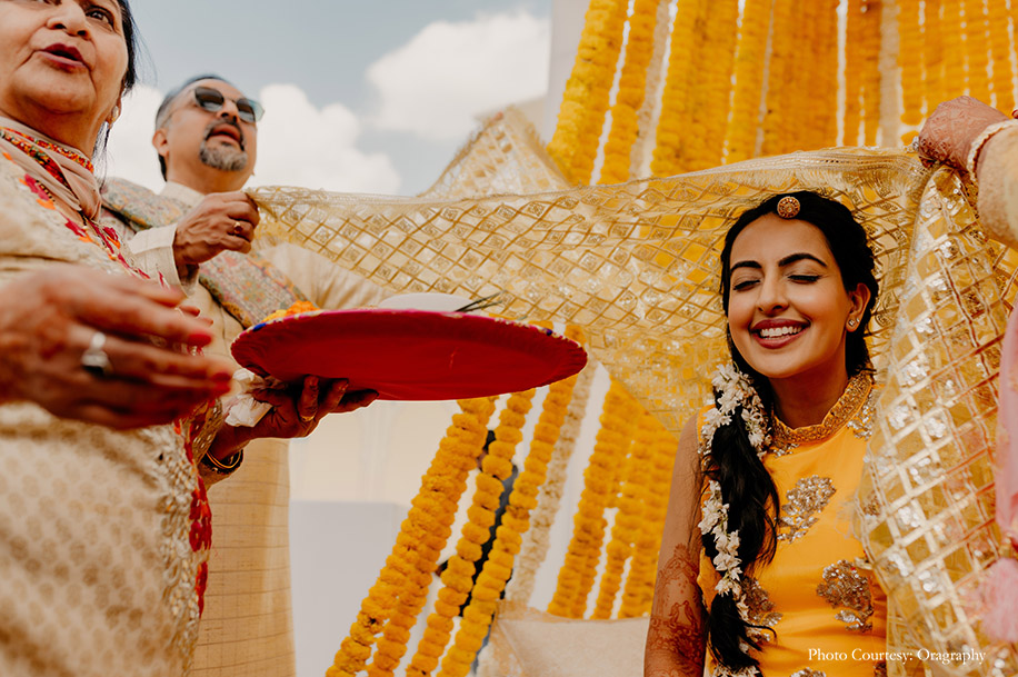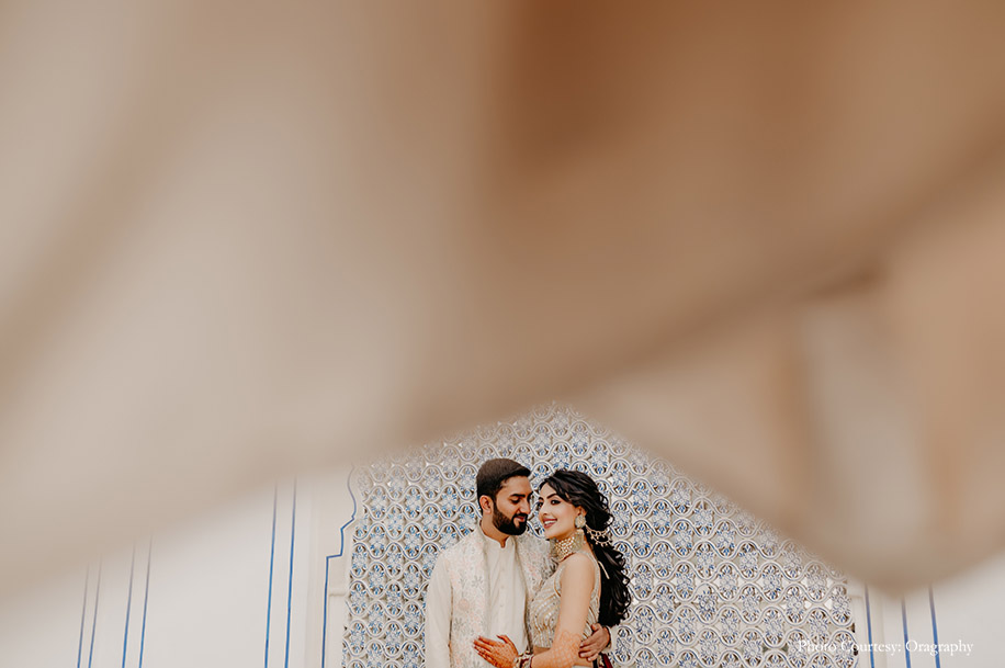 To photograph every detail of their celebrations, the couple put complete trust in team Oragraphy who stunned them with their unique clicks that captured the essence of their wedding. Aanchal shares, “Team Oragraphy is a hidden gem in the world of photography! Their work is innovative, accurate, and reliable. You can trust them completely to capture the most candid, vivid, and beautiful moments of your wedding without a second thought. Whenever I look at our pictures, it takes me back in time to that special moment and gets me teary-eyed with emotion. We were extremely happy with the results and will be hiring Oragraphy for all our events going forward!”