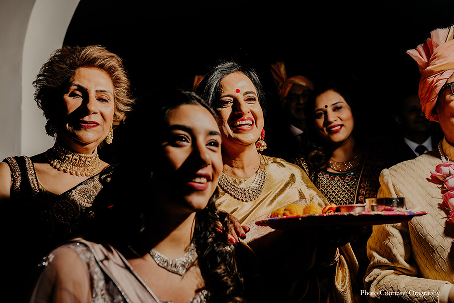 Bride’s Outfits: Liz Paul (Mehndi), Falguni Shane Peacock (Cocktail & Sangeet), Akilah India (Haldi), Aditya & Mohit (Wedding)