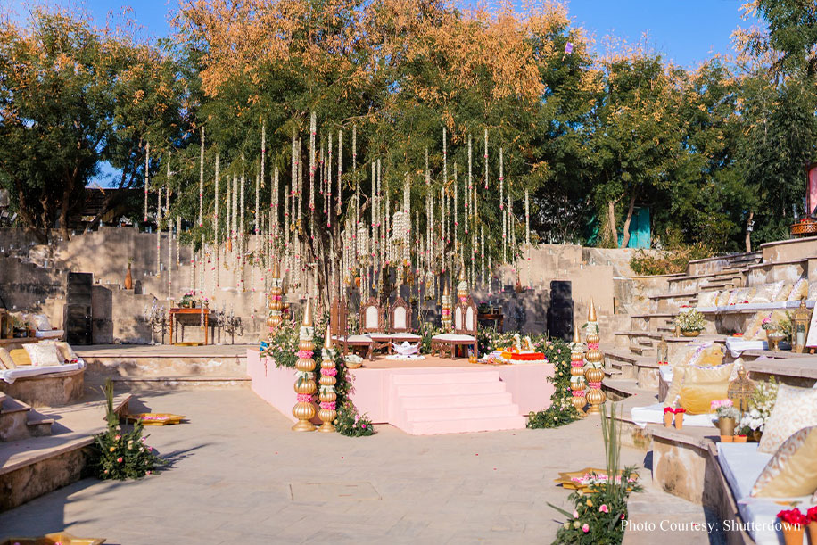 Converting a majestic tree into a wedding mandap, this couple’s destination wedding was hosted in the lap of nature.
