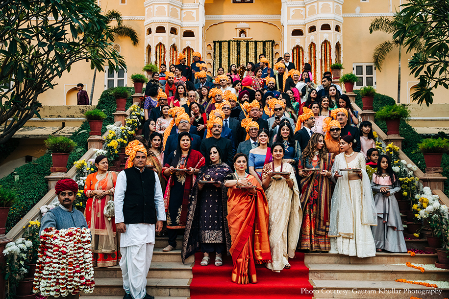 Venues: Samode Bagh Resort (Pre-Wedding), Samode Palace (Wedding), Shiv Niwas Palace, Mor Bagh, Delhi (Reception)