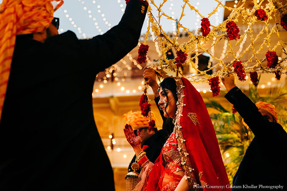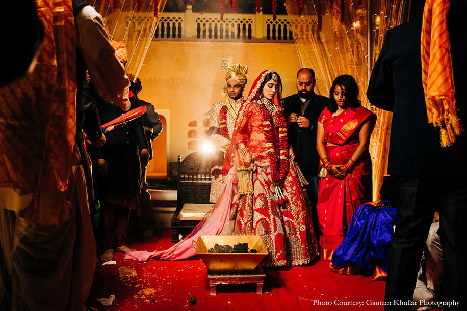 Aarushi and Sangram, college lovers, after smooth sailing in a long-distance relationship decided to enter the nuptials with a beautiful palatial wedding in Jaipur. The team of WeddingSutra Favourite – Gautam Khullar Photography with their intuitive lens beautifully captured their pictures against the striking backdrops, of this larger than life wedding.