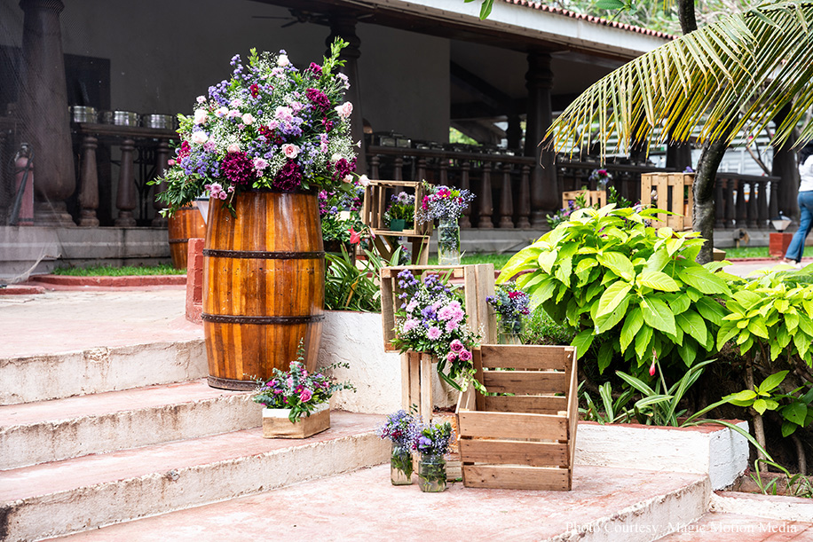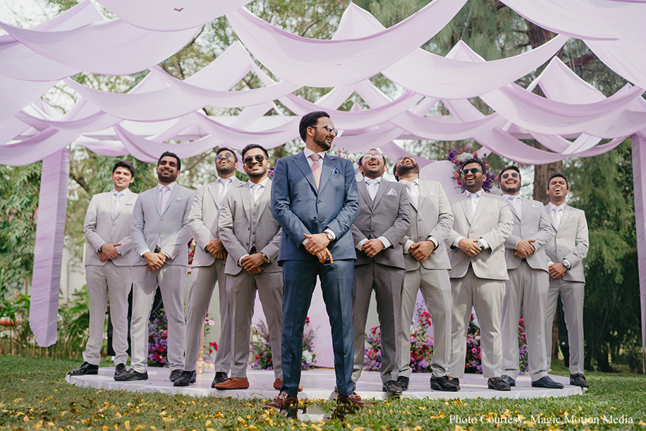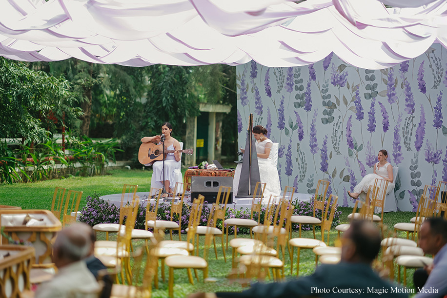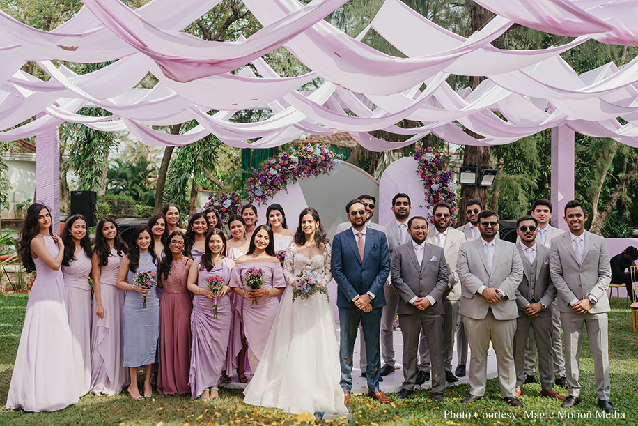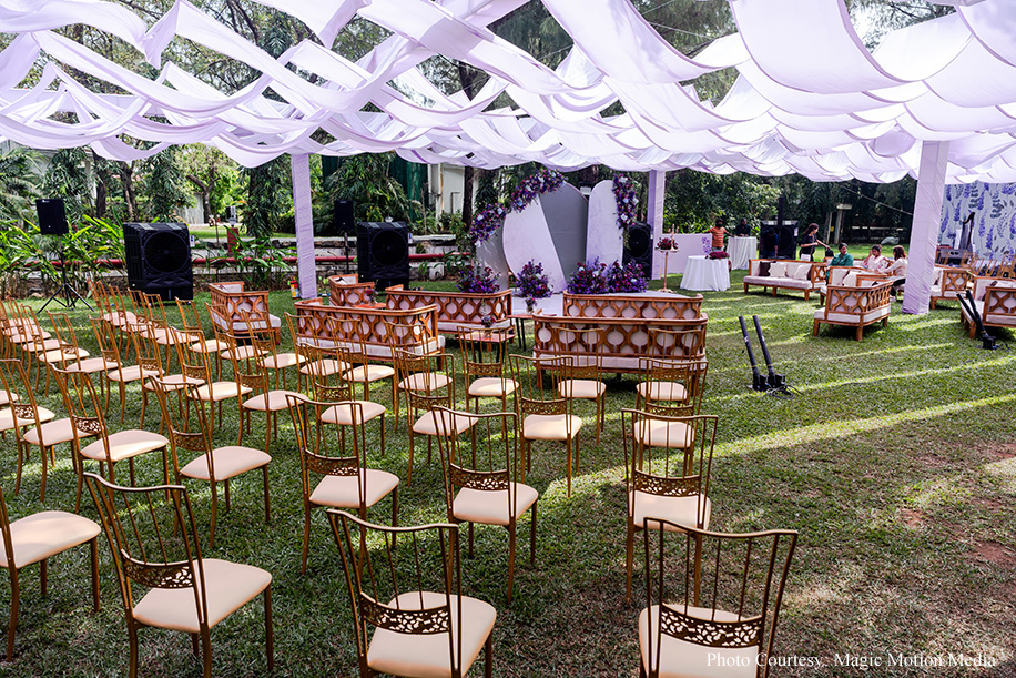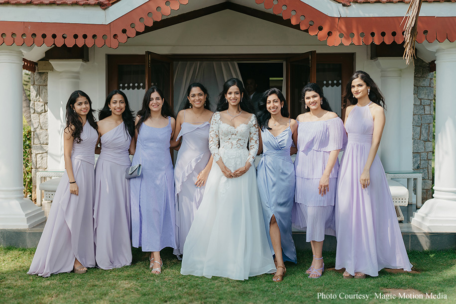 Since childhood, bride Aashika had dreamed of a purple-themed wedding. The seaside church venue and wedding lunch at Taj Fisherman’s Cove made her dream a reality. The morning began with a radiant bride heading to the Church, followed by a lavender-themed lunch on the lush lawns of the hotel. The couple entered to the soothing tunes of a harp player, with champagne toasts, laughter, and joy all around.