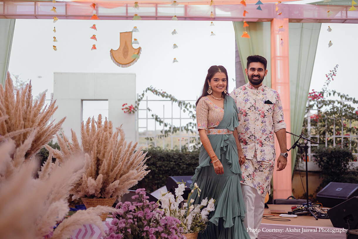 Fusing a boho aesthetic with timeless traditions, the mehndi celebration unfolded With Diwan sets thoughtfully arranged throughout the venue exuded a relaxed and inviting ambiance, setting the tone for comfort and ease. The evening was beautifully amplified by a live music performance by Arpit Chourey, seamlessly transitioning into the energetic beats curated by DJ Sunny.