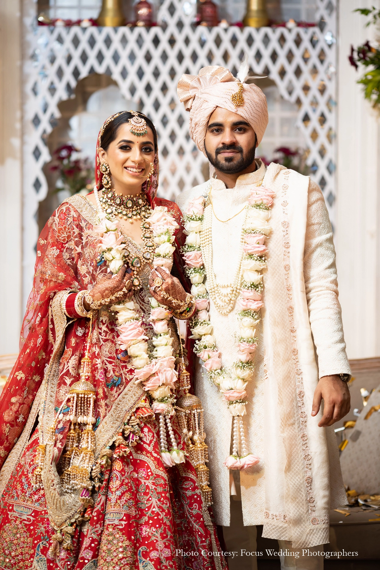 Using a classic color palette of white and gold while eschewing a traditional mandap, this couple’s wedding was steeped in contemporary elegance.