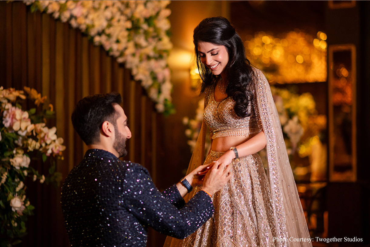 Aditi recollects, “Dhruv and I met in Singapore in 2018 and started dating. Dhruv never officially asked me to be his girlfriend, but somehow we just knew we were exclusively dating. Fast forward 6 years later, Dhruv told me he had a business trip to Bali and asked if I wanted to join him for the weekend. We enjoyed a helicopter ride, and as we flew over the hotel’s terrace, ‘Will you be my girlfriend, Adi?’ was written on the terrace with flower petals. I assumed this was his surprise! However, as the evening fell, Dhruv made the excuse of a client meeting and had the hotel staff show me around the property. I started walking down the path and realized something was happening as I spotted several photographers hidden in the trees. Once I reached the end of the path, I saw Dhruv standing on the same terrace where he had planned the earlier surprise. We enjoyed an intimate candlelight dinner and it was truly such a magical evening!”