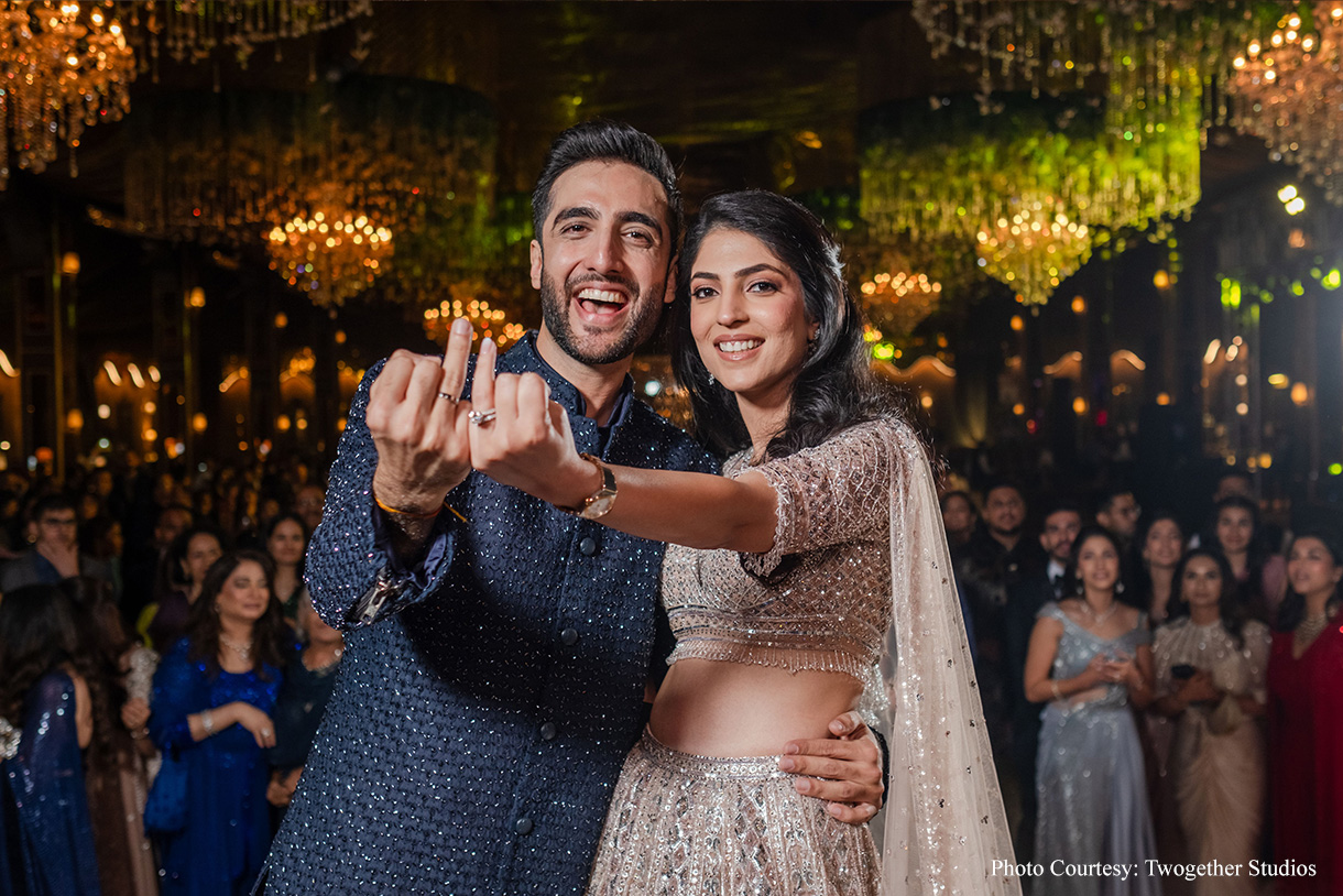 Keeping the glamour quotient high, the sangeet had everyone, regardless of their age, taking the stage by storm! The couple exchanged rings onstage and later gave a smashing performance as they were cheered on by their loved ones.
