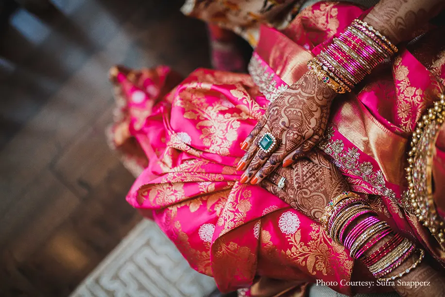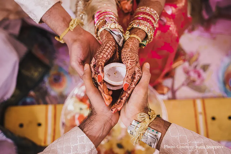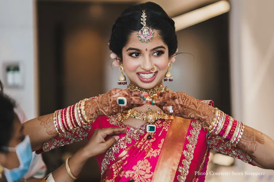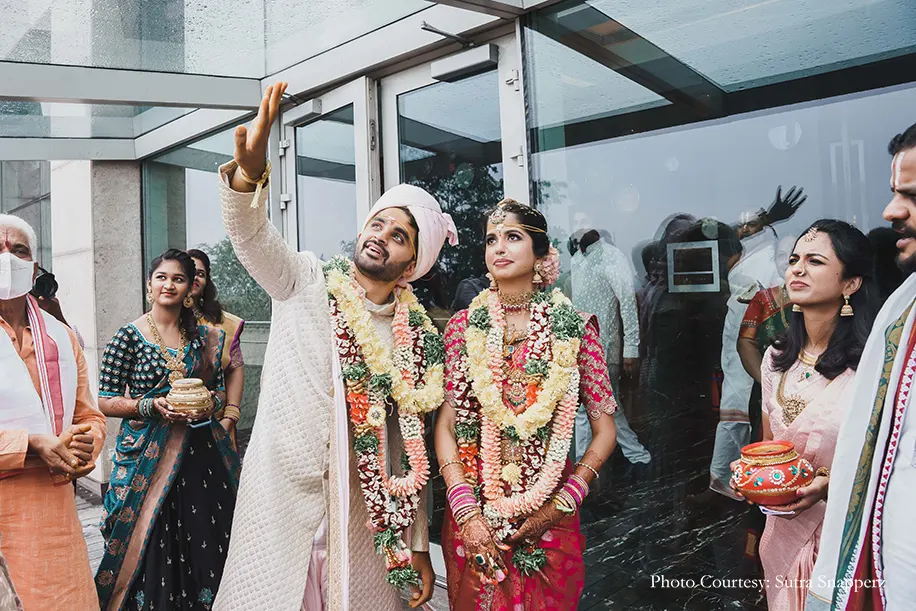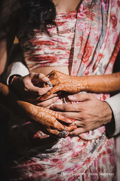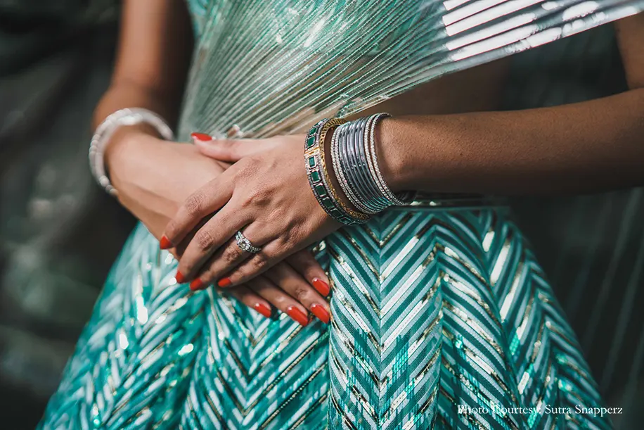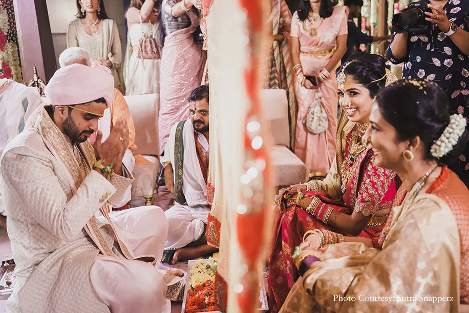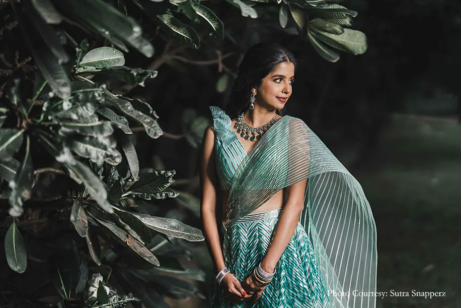 The couple brought on board the team of Sutra Snapperz to immortalize their special moments. Recalling their experience with them, they share, “They were like family and took the time to understand what we like and want! We love how candid their pictures turned out to be, and the quality of the final editing. They were super accommodating with our last-minute changes and requirements regarding dates and venues and made the entire experience very smooth and memorable”.