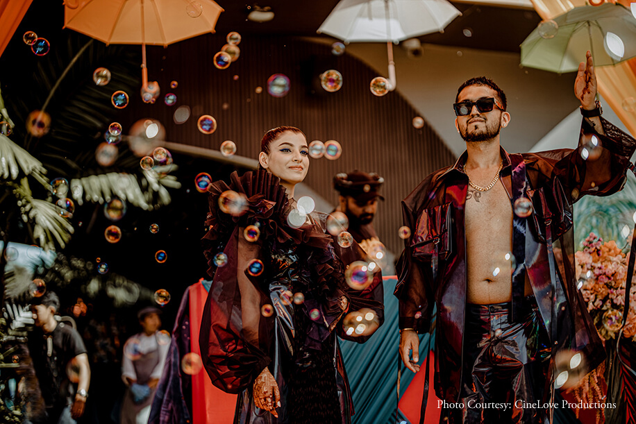 Bride’s Outfits: Sulakshana Monga (Mehndi), Amit Aggarwal (Valentine Dinner), Bloni.Atelier (Pool Party), Falguni Shane Peacock (Ring Ceremony/Cocktail Party), Sabyasachi Mukherjee (Wedding)