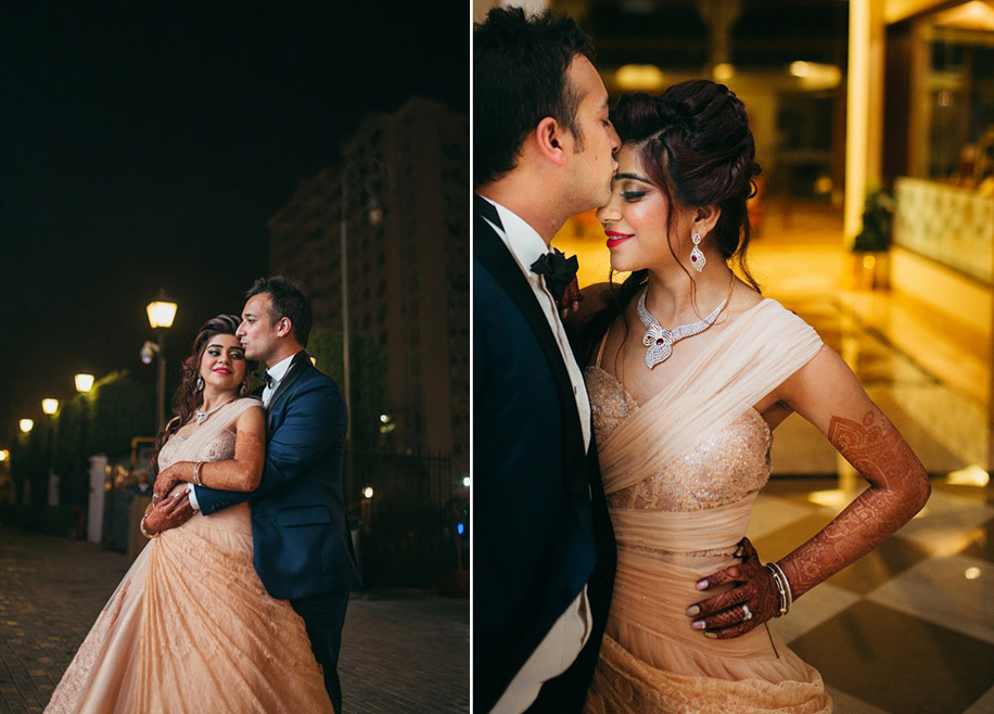 New-Delhi based Akanksha and Shivank’s traditional yet modern nuptials saw them enjoying a heady engagement bash at a club and tying the knot at an elegant ceremony in a temple