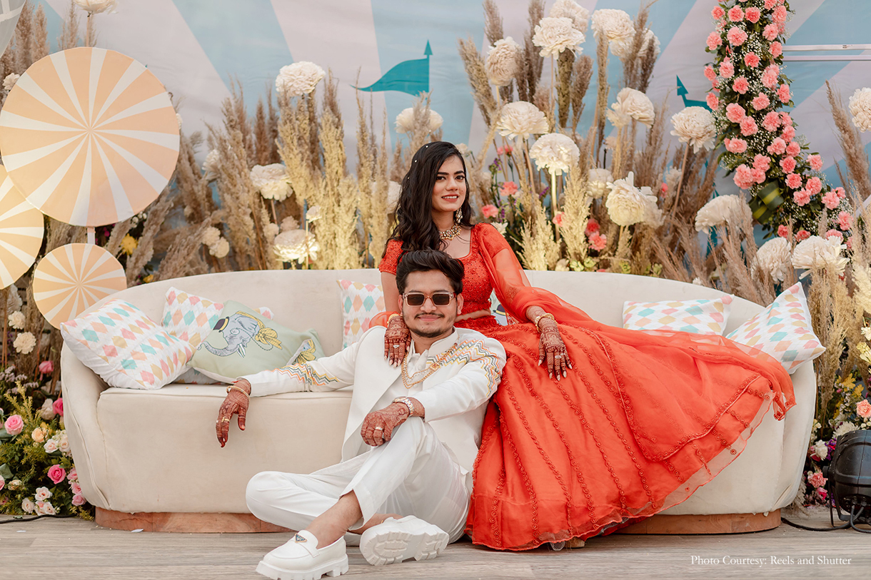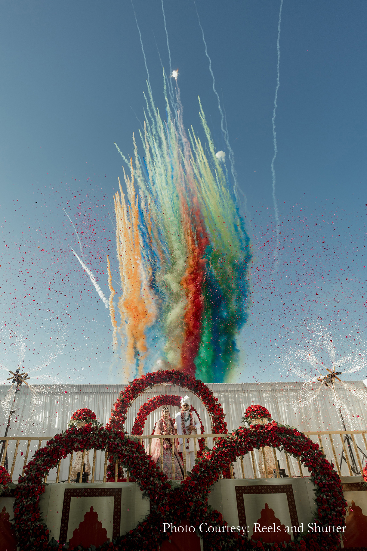 Turning a barren plot of land into an oasis of colour, this couple’s regal wedding was an ode to their Rajasthani routes.