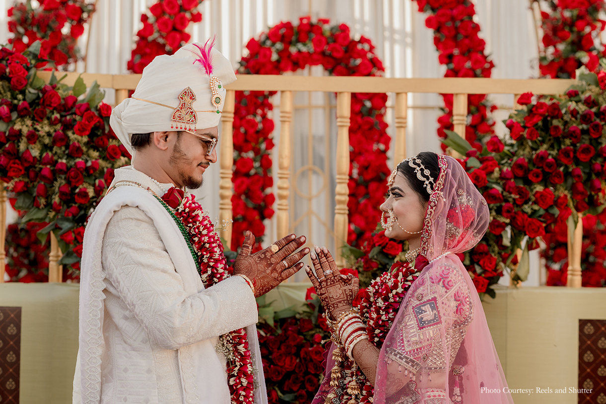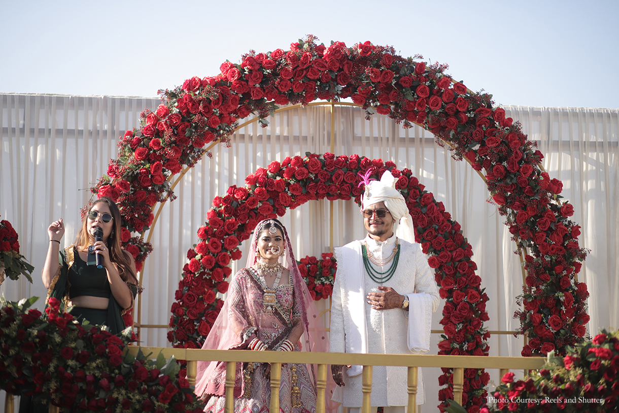 Mishal shares, “The big day was themed as the ‘royal affair’. The aim was to keep it simple and royal. Elegance was key in our design story and we installed an infinity structure with floral treatment. Fresh red roses and gold panels accentuated the backdrop.”