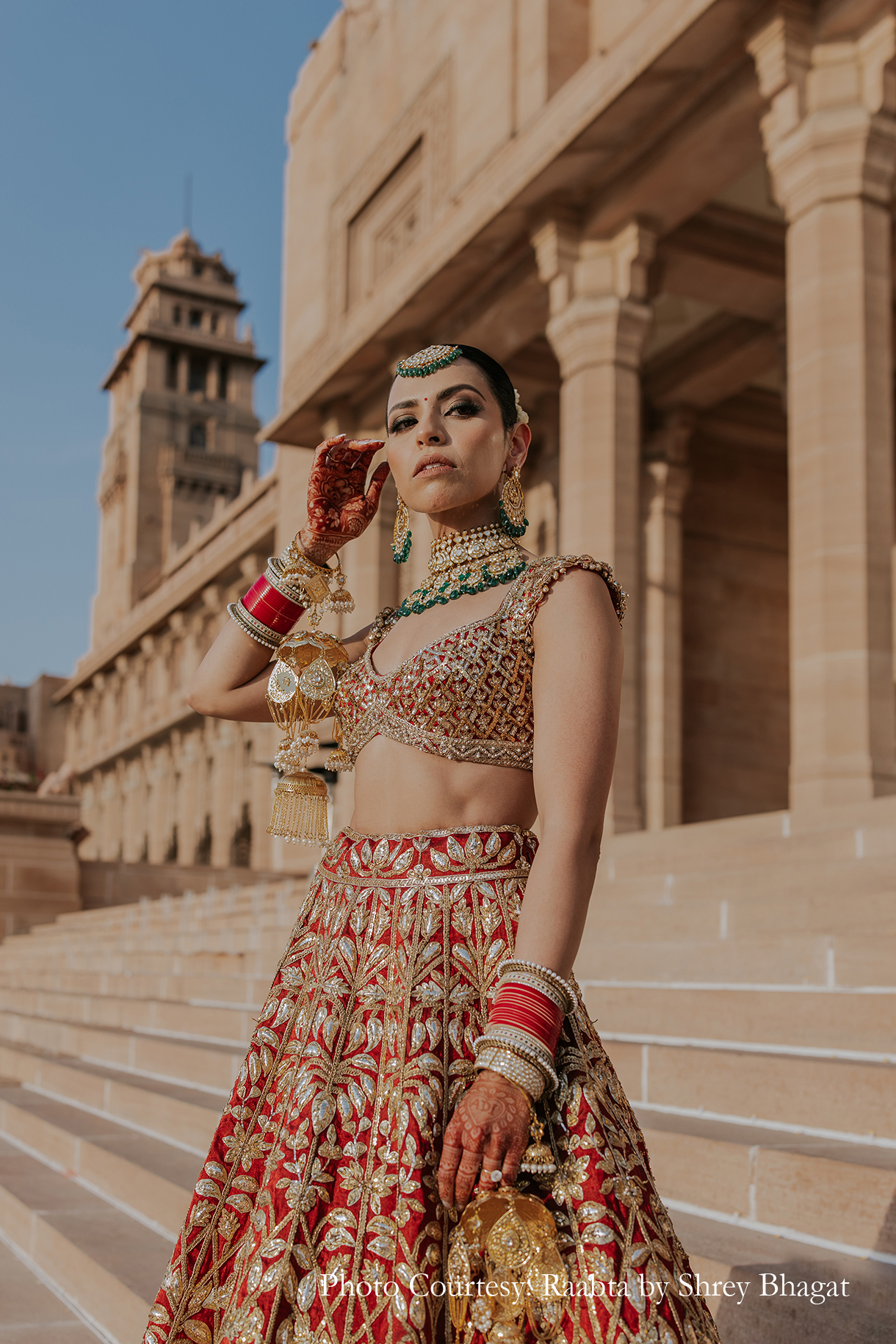 Capturing the magic as the couple stepped into forever was Raabta by Shrey Bhagat, whose keen eye and artistic flair turned fleeting moments into timeless memories. Amala shares, “Working with team Raabta by Shrey Bhagat was nothing short of a dream. Calm, creative, and incredibly intuitive, they blended seamlessly into our celebrations, allowing us to be fully present while they worked their quiet magic behind the scenes. One of the most emotional moments came just before my bridal entry — I took a tumble, breaking both my kadas and kaleeras. I was on the verge of tears, but their calming presence and a few sneak peeks of my bridal portraits lifted my spirits instantly. Despite tight schedules and tricky logistics, they delivered portraits beyond anything I’d imagined. What truly amazed us was how effortlessly the photography team seemed to be everywhere at once. Indian weddings are a whirlwind, but their meticulous coverage gifted us a treasure trove of moments, even the ones we didn’t witness ourselves. Raabta by Shrey Bhagat gave us more than photographs. They gave us emotion, memory, and magic — frozen in time. It’s a wedding album we’ll cherish forever, one we can’t wait to show generations to come.”