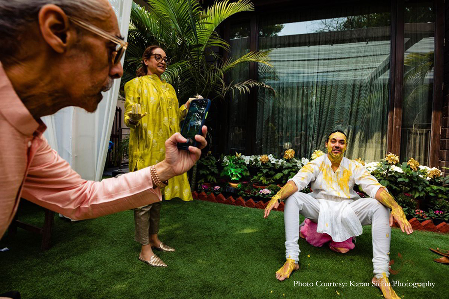 Karandeep checks out his newfound glow thanks to haldi!