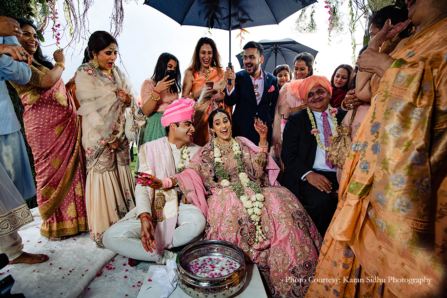 Amidst the rolling hills of Shimla, Amanat and Kunal’s summer celebrations turned into a monsoon wedding glistening with showers of blessings!