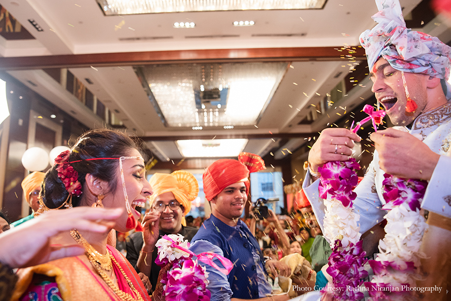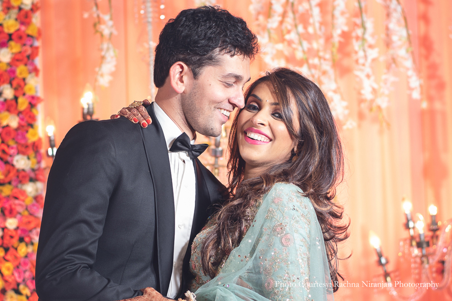 Anchalika and Harshad both believe in elegance through simplicity and chose minimal, classy decor for their functions. The team at Bombay Decorators & Contractors provided stunning and subtle backdrops to complement rather than overpower the events. While drapes, flowers, chandeliers and lights made up the primary components of the decor; all these elements were used prudently to strike the perfect balance between opulence and elegance. The stunning decorations can be seen in these wonderfully-captured moments by Rachna Niranjan Photography.