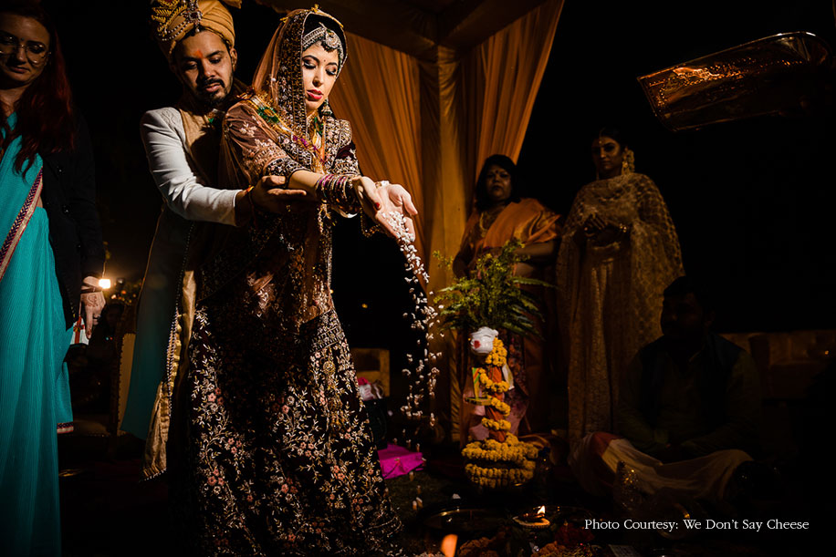 Acknowledging the colossal task of planning a destination wedding, the duo chose to seek expert assistance. On the photography front, they chose We Don’t Say Cheese who impressed the couple with their hard work and dedication. Anda shares, “Team ‘We Don’t Say Cheese’ was absolutely amazing. They managed to capture each moment and gave us a treasure trove of memories to cherish forever. Their talent, sensitivity, and commitment are clearly visible in their stunning clicks!”