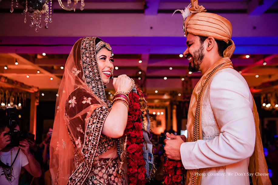 Anda and Parag first met at the picturesque Maldives which is one of the most ideal destinations to celebrate love. Surrounded by friends and colleagues, the duo quickly discovered the chemistry between them on their way back home. Once they’d landed, Parag wasted no time in asking for Anda’s phone number. Love blossomed steadily over numerous conversations and text messages, once they realized their feelings for each other, there was no turning back! Held at the plush ITC Mughal, this couple’s Agra based wedding was full of playful and tender moments captured by WeddingSutra Favorite – We Don’t Say Cheese, who, with their superior expertise made every shot count.