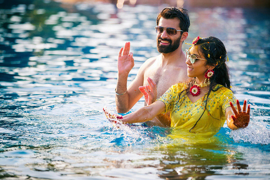 The traditional haldi and mehndi ceremonies went hand in hand with a pool party, dancing on the beach, street-food and a BIG SPLASH where both Ameet and Anesha were thrown into the pool with their haldi on! The dress code was “Breezy Brights” and the colors for the day were pinks, oranges, purples, and yellows.
