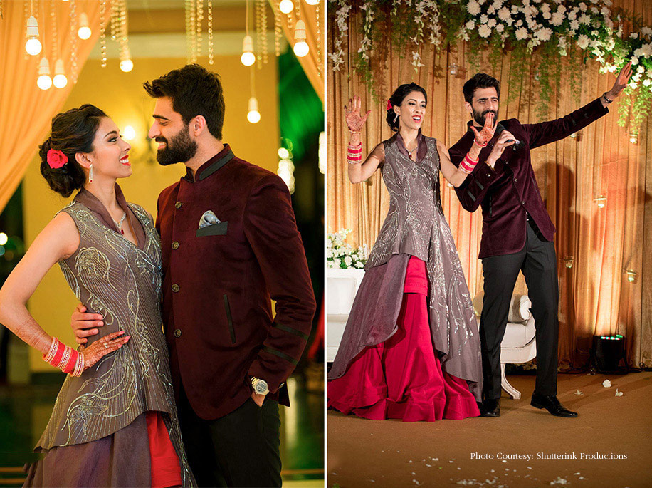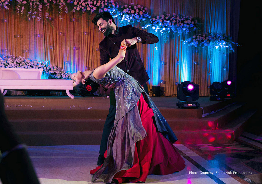 The reception saw everyone celebrating and toasting the newlyweds, as they closed three unforgettable days! In their unique Bollywood style, Ameet and Anesha performed their “first dance” as newlyweds to a romantic mash-up created by Ameet and choreographed by the couple themselves. The dress code was ‘Royal Tones – Formal and Glamorous’ and the color theme was gold and shimmery. The bride wore a Gaurav Gupta lehenga gown paired perfectly with a diamond and ruby jewellery set while the groom looked regal in a custom-designed Bandhgala Jodhpuri suit.