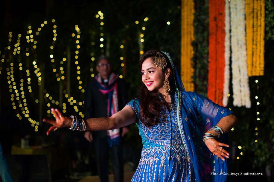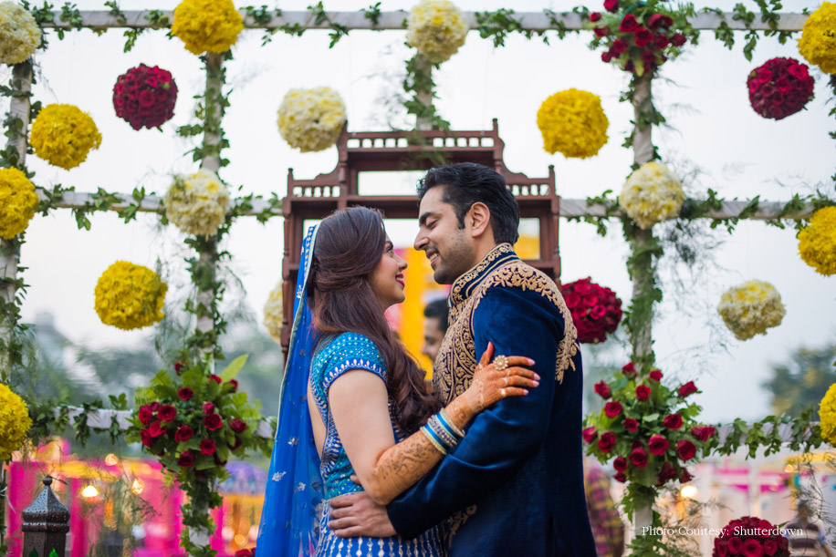 Anisha shares, “The sangeet for us was super colorful with all our near and dear ones dancing their hearts out. The best part was dancing to ‘Kajra re’ with my father-in-law and Aviral.” There was a lot of color and the venue was decorated using fresh flowers creating a beautiful atmosphere.” While the bride looked gorgeous in a blue Anita Dongre outfit, Aviral complemented her in a JJ Valaya creation.