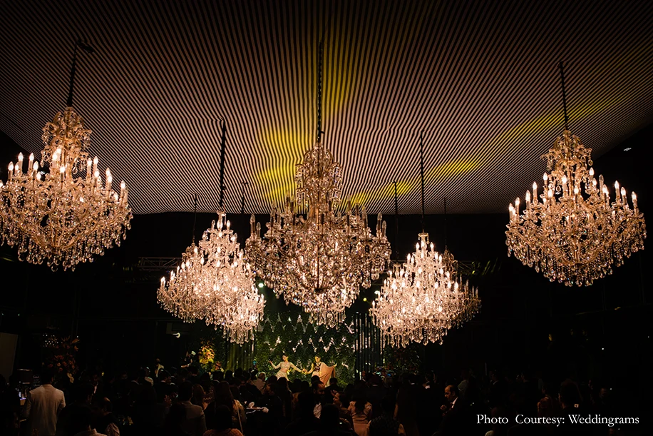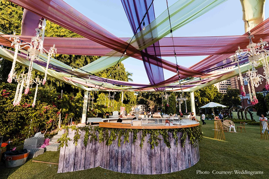 Brimming with rousing revelries, a glitzy Engagement and Cocktail soiree at Morbagh kicked off the festivities. Guests were greeted by an enchanting tropical walkway that led into the glamorous occasion decked with chandeliers, rich floral arrangements and more. Stunning performances by the couple and their loved ones, unique cocktails, groovy music by the DJ and more, made the night truly memorable.