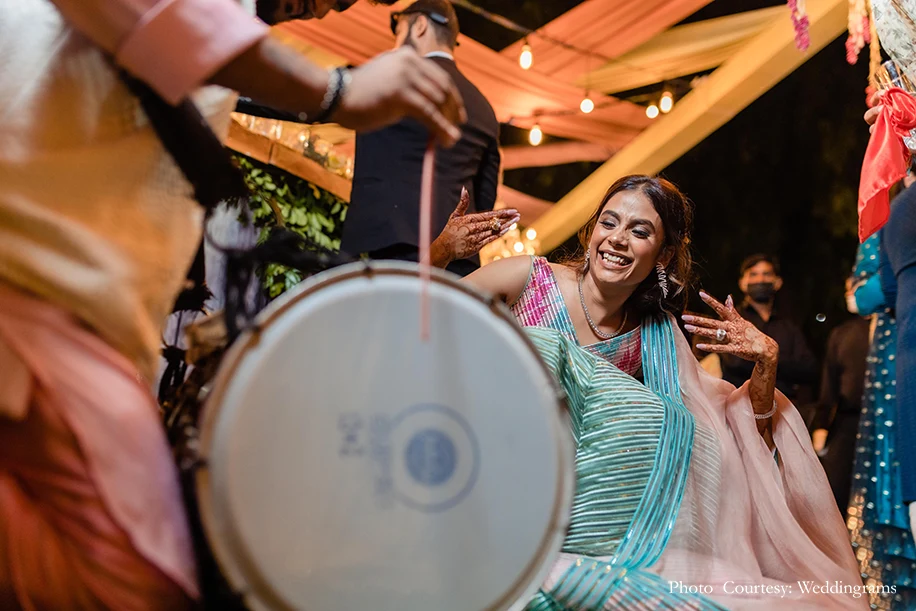 The bride being a wedding planner herself, took charge of envisioning and executing her dream wedding with the help of her talented team of Riwaaz-e-Rishte. Anisha shares, “Being a wedding planner myself, I had a lot of different plans and ideas that we considered before narrowing them down. We always wanted outdoor functions with lush green spaces and picked our different venues across Delhi accordingly. We also were very clear on what both of us wanted in terms of decor and themes which my very talented team brought to life beautifully.”