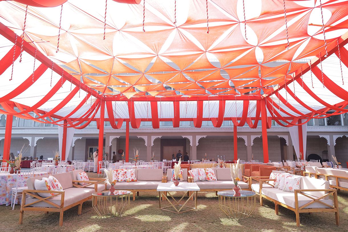 For the Mehndi, the guests were welcomed into a dazzling spectacle embodying the essence of Modern Vrindavan, set against the stunning vista of Fateh Sagar Lake. This harmonious fusion of tradition and contemporary flair, complemented by a DJ playing popular tunes worked as an antidote to drive away the fatigue of the long journey and set the mood for the day. Meanwhile, the women had their hands adorned by the Mehndi artists under a vibrant canopy.