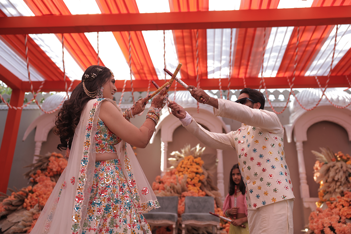 From the ‘Modern Vrindavan’ Mehndi to the ‘Oscars’-inspired Sangeet and ‘Rust Wonderla’ Haldi, this Udaipur wedding saw a dizzying array of creative themes!