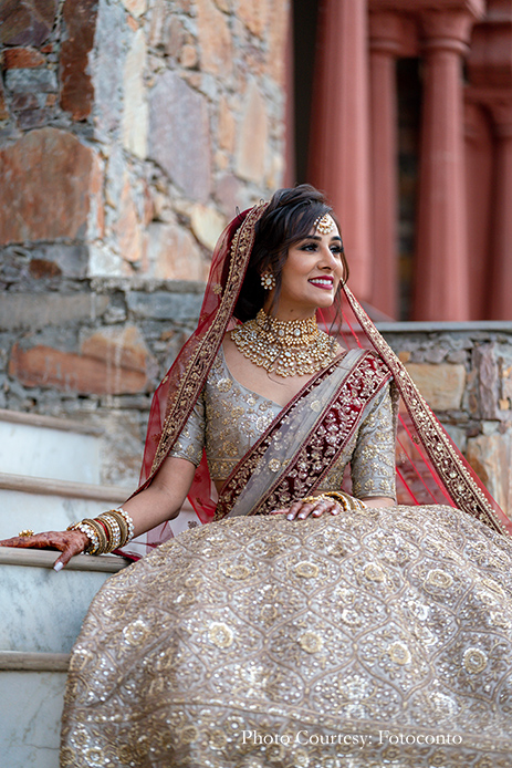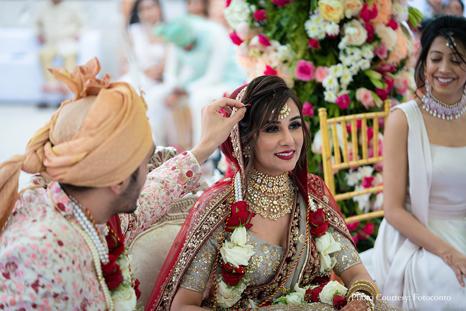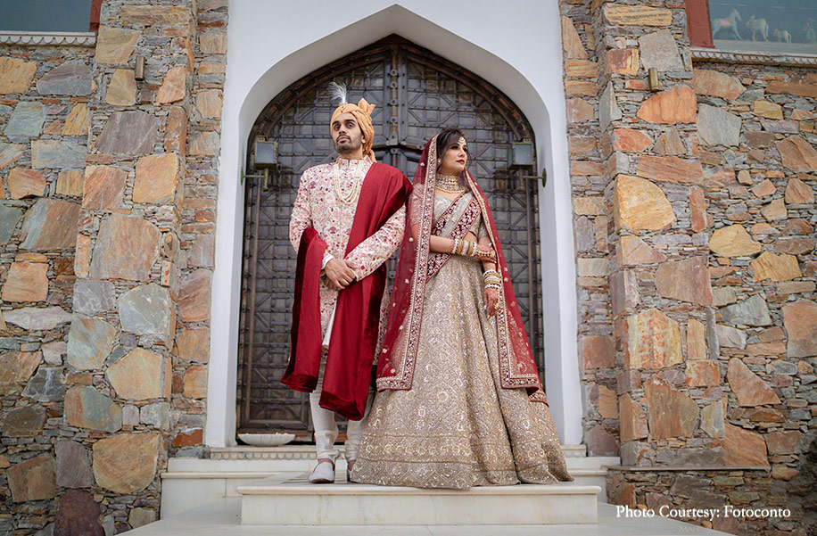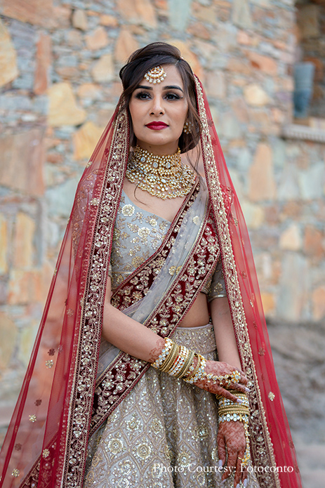 Staying in sync with tradition, I chose to wear a grey and red Manish Malhotra lehenga, while Ravi donned a customized sherwani.”