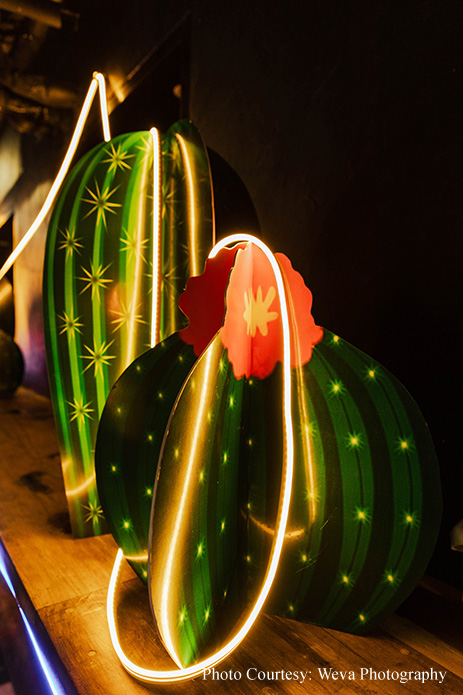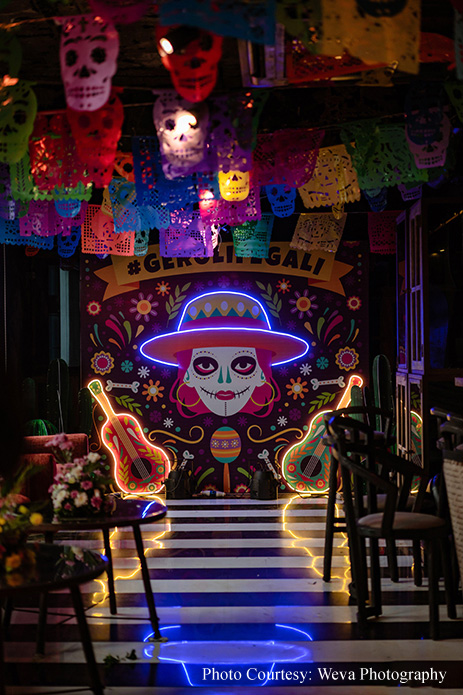 Charannya shares, “The running theme ‘Día de los Muertos’. We used plenty of vibrant hues, glitzy lights and cute props.”