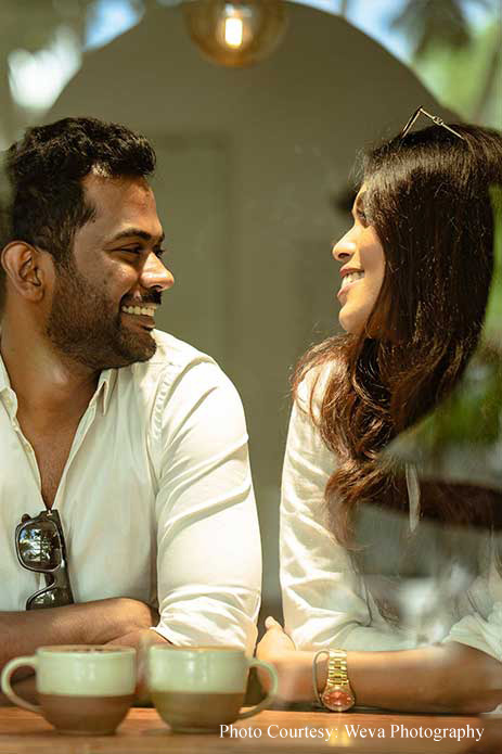 For their engagement, the couple chose Taj Fisherman’s Cove Resort & Spa where they kicked off their festivities in style by the shore. Located near Mahabalipuram, which is roughly an hour’s drive away from Chennai, this venue is nestled in the lap of nature, which in turn, gave the couple plenty of room to experiment!