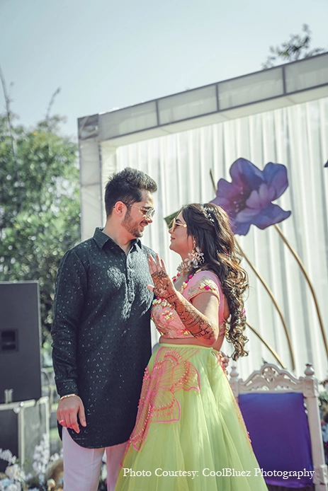 Happy memories are one of the most precious things that one carries home from a wedding, and documenting each of the couple’s adorable moments was CoolBluez Photography! With a highly talented team of photographers who captured the wedding revelries, Anshika and Udit took home a treasure trove of memories along with their loved ones. From dynamic shots of the bride twirling at the Mehndi, the playful Haldi shenanigans, and the playful chemistry of the bride with her squad at the Sufi night, each event was artfully photographed with careful attention to detail.