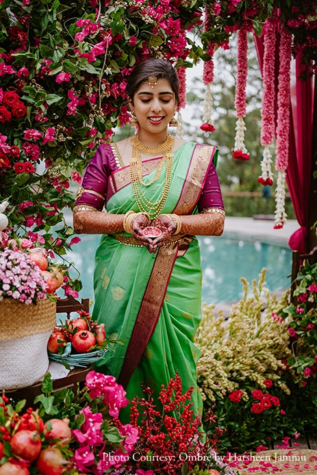 Nestled amidst the lush beauty of the Coorg landscape, Anusha Bhat and Govind Shenoy’s wedding was a vivid four-day celebration that enchanted the senses. Planned, conceptualized, styled, and decorated by WeddingSutra Favorite – The A-Cube Project who meticulously looked into every detail in their quest for perfection, this Konkani wedding struck the perfect balance between traditional and modern concepts.