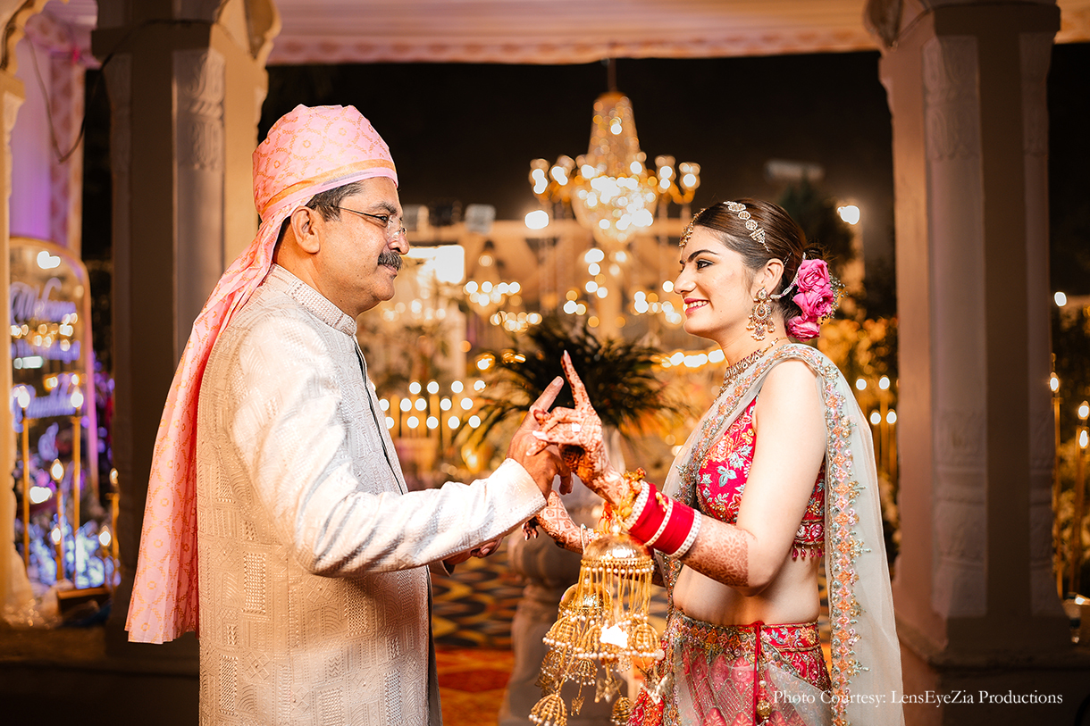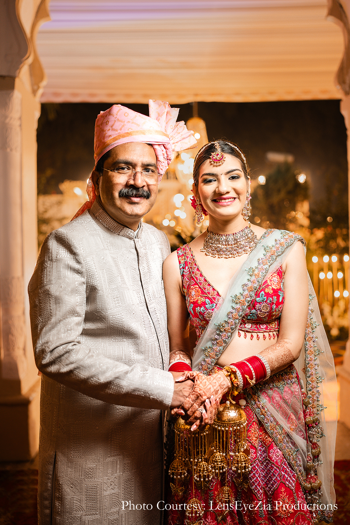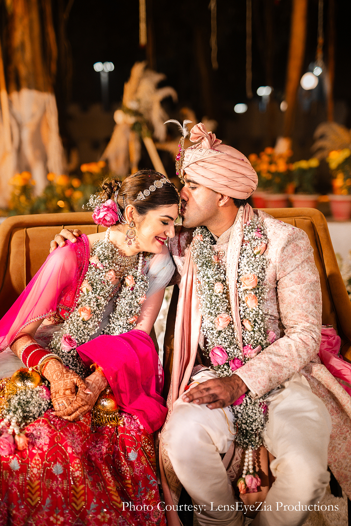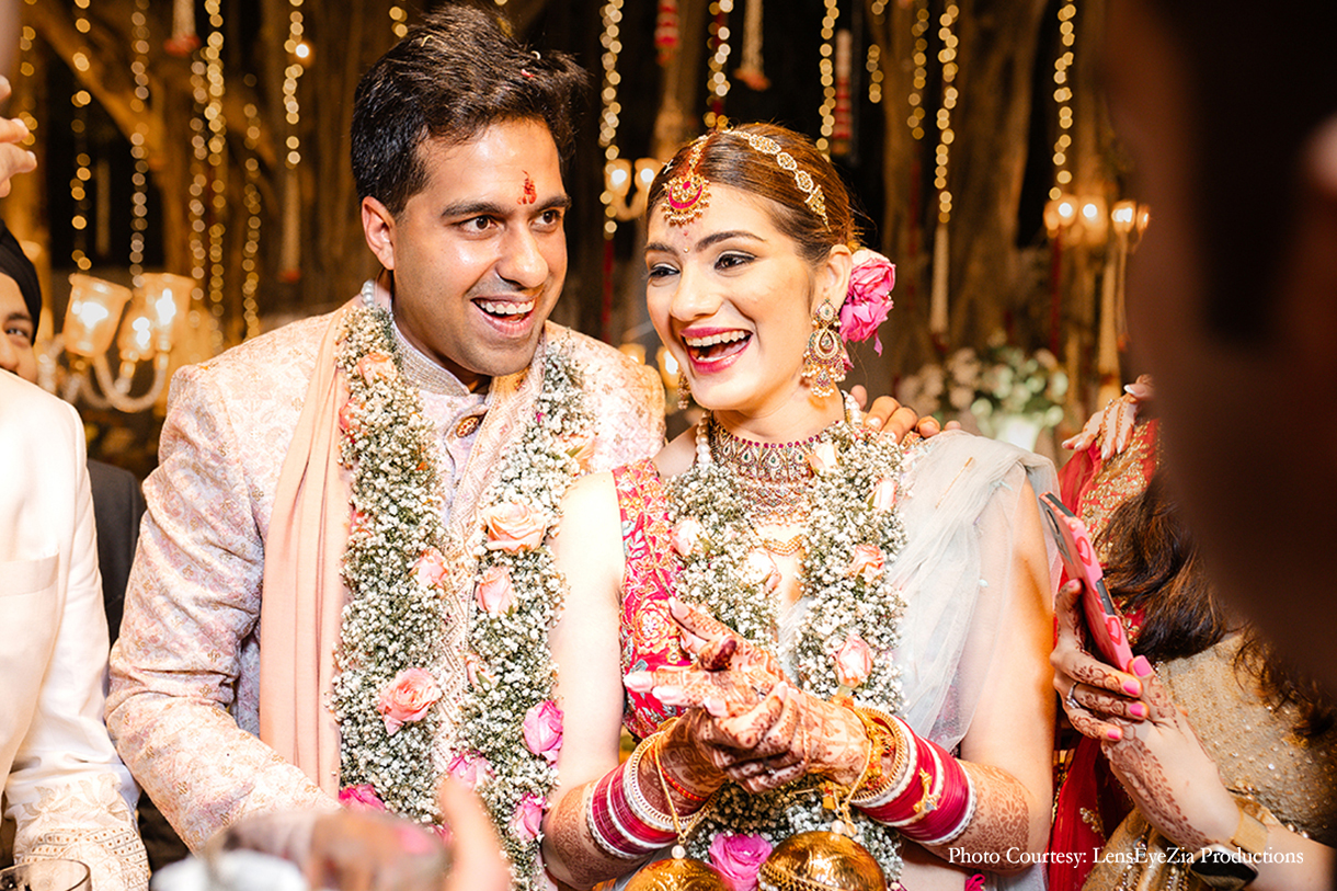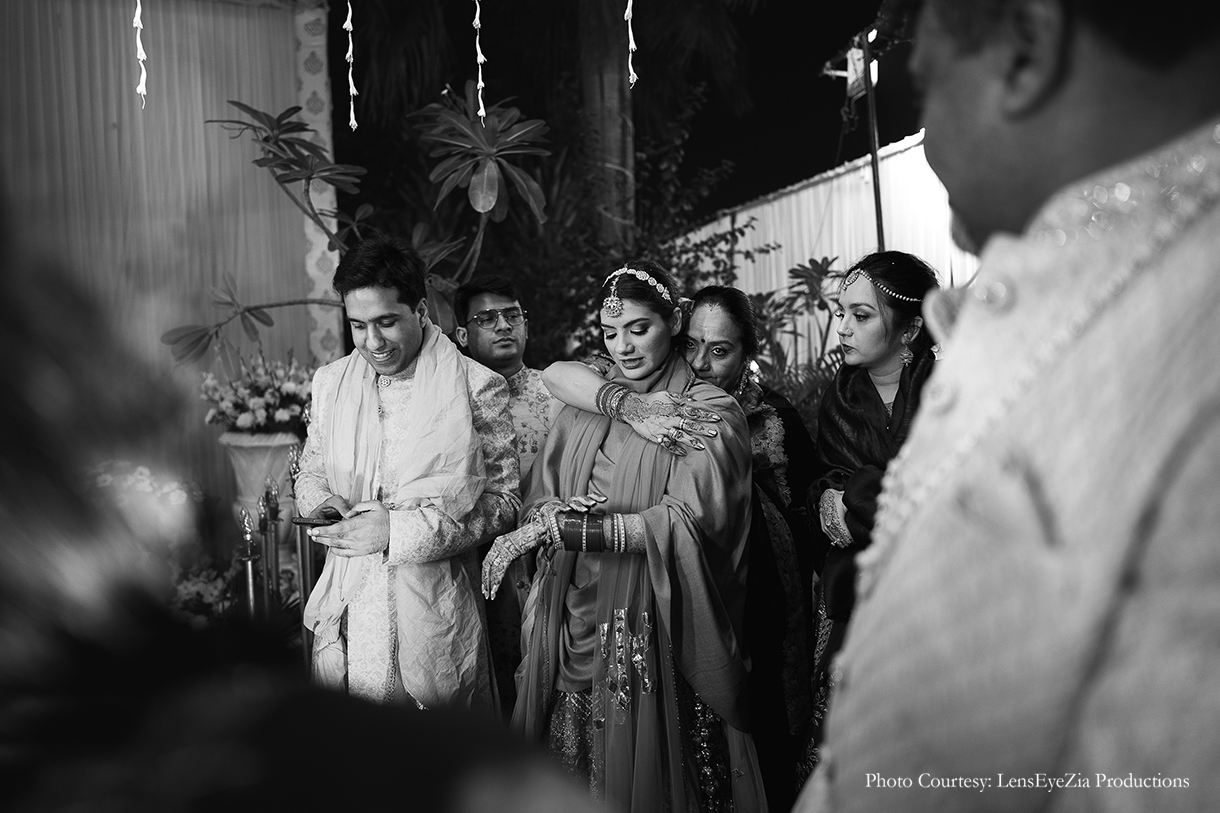 Reflecting on their choice of photographer, they share, “Our experience with LensEyeZia Productions, our wedding photographers, was nothing short of magical. With an enchanting blend of skill and creativity, they effortlessly captured our most beautiful memories, turning fleeting moments into timeless treasures. Their lens was not just a tool but a storyteller, weaving our love story through each frame. From candid laughter to stolen glances, LensEyeZia Productions crafted a visual symphony that we will cherish forever. They didn’t just capture pictures, they painted a canvas of emotions, making our wedding album a masterpiece of memories.”