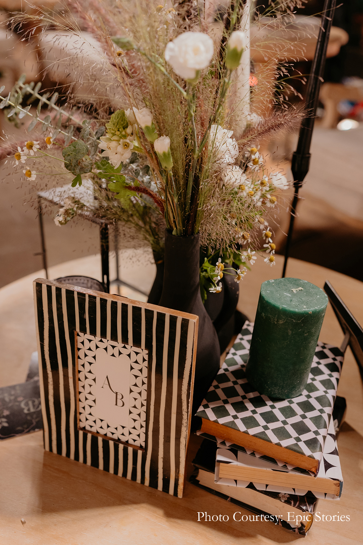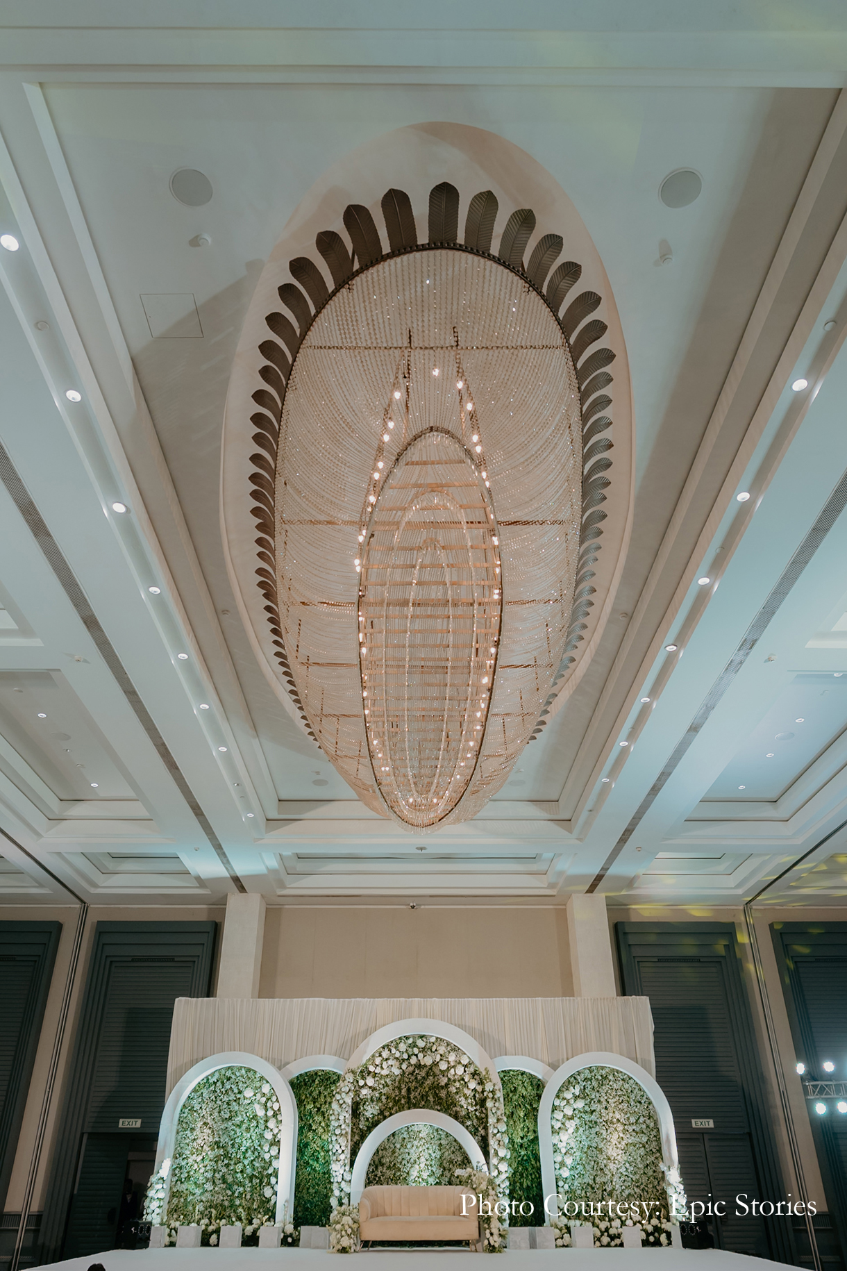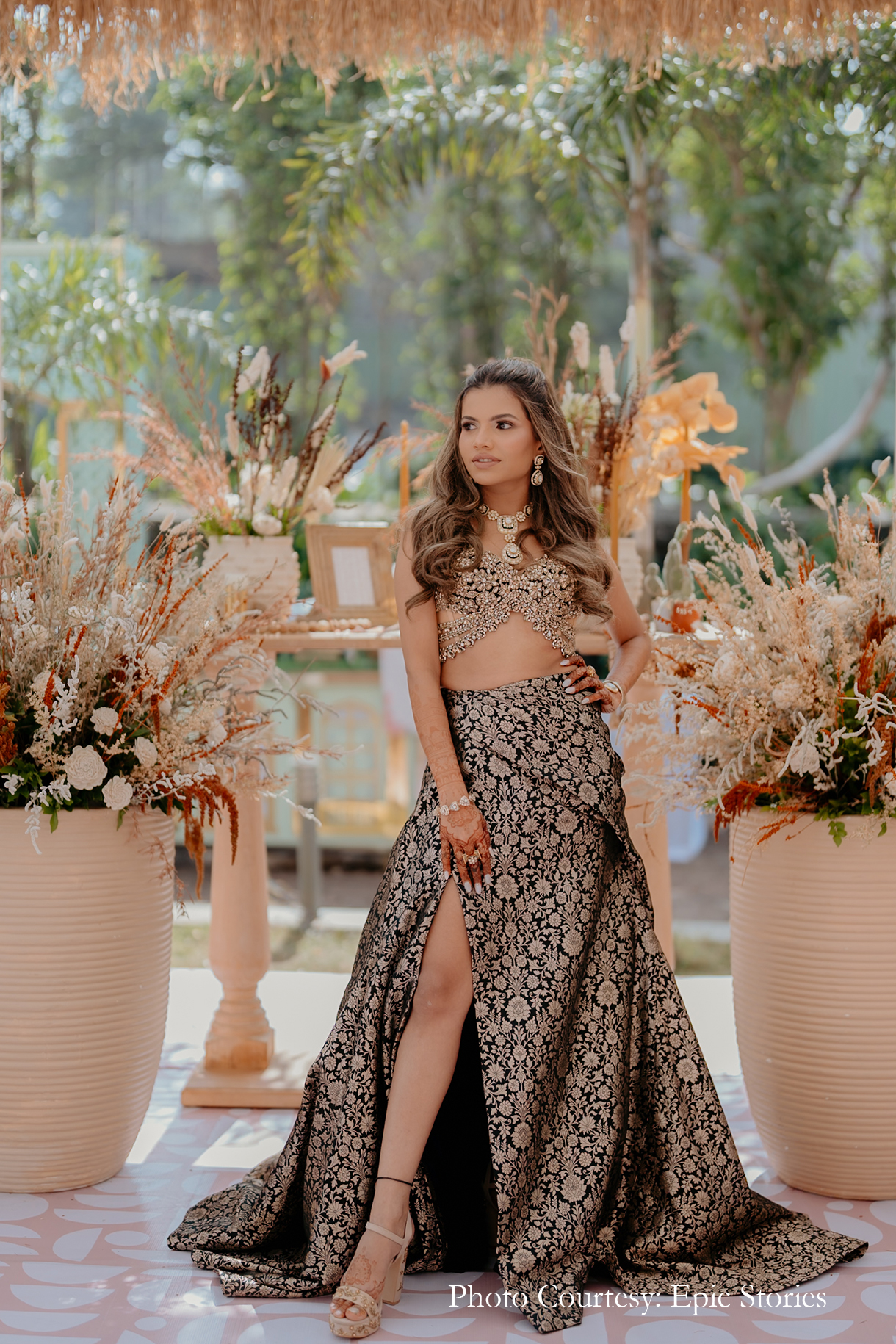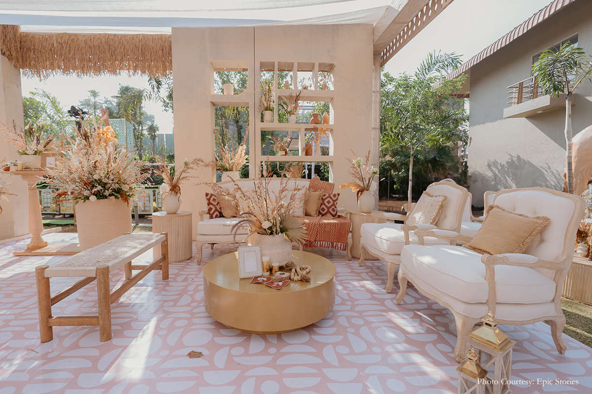 The Myra was hosted indoors with minimal floral decor. The entryway looked vibrant with its colorful blooms, mandala-inspired prints, crystal hangings and quirky decor elements.