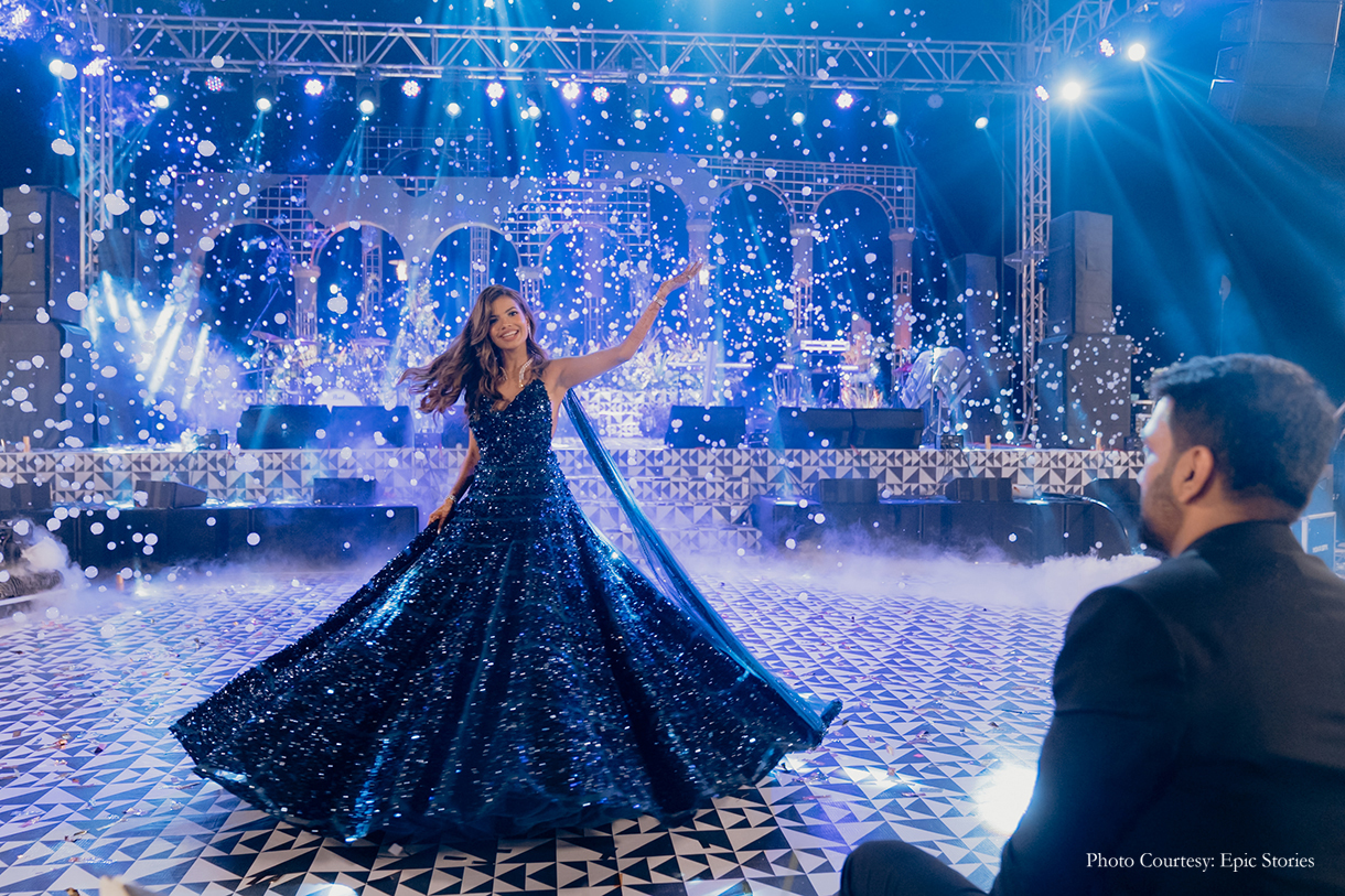 “The sangeet theme was ‘Glam Night in the Ruins’ and the team executed it perfectly. The monochrome theme was in perfect sync with the starlit night. Silver decor elements added a dash of glam while flashing lights put everyone in the mood to party”, shares Anushka.