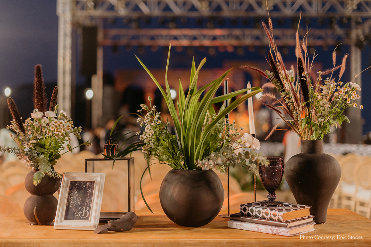 Anushka shares, “From the get-go, we wanted the welcome event to feel like a ‘party in the desert’ for our guests. The designers did an incredible job here as it went ahead exactly as we’d envisioned. Earthen vases, pampas grass and macrame hangings gave the venue a boho vibe. Hues of muted brown, gold and ochre ensured the desert theme was echoed in every aspect.”