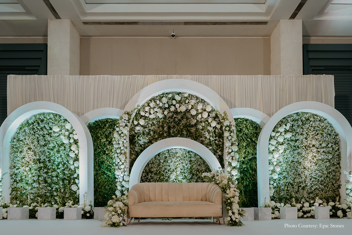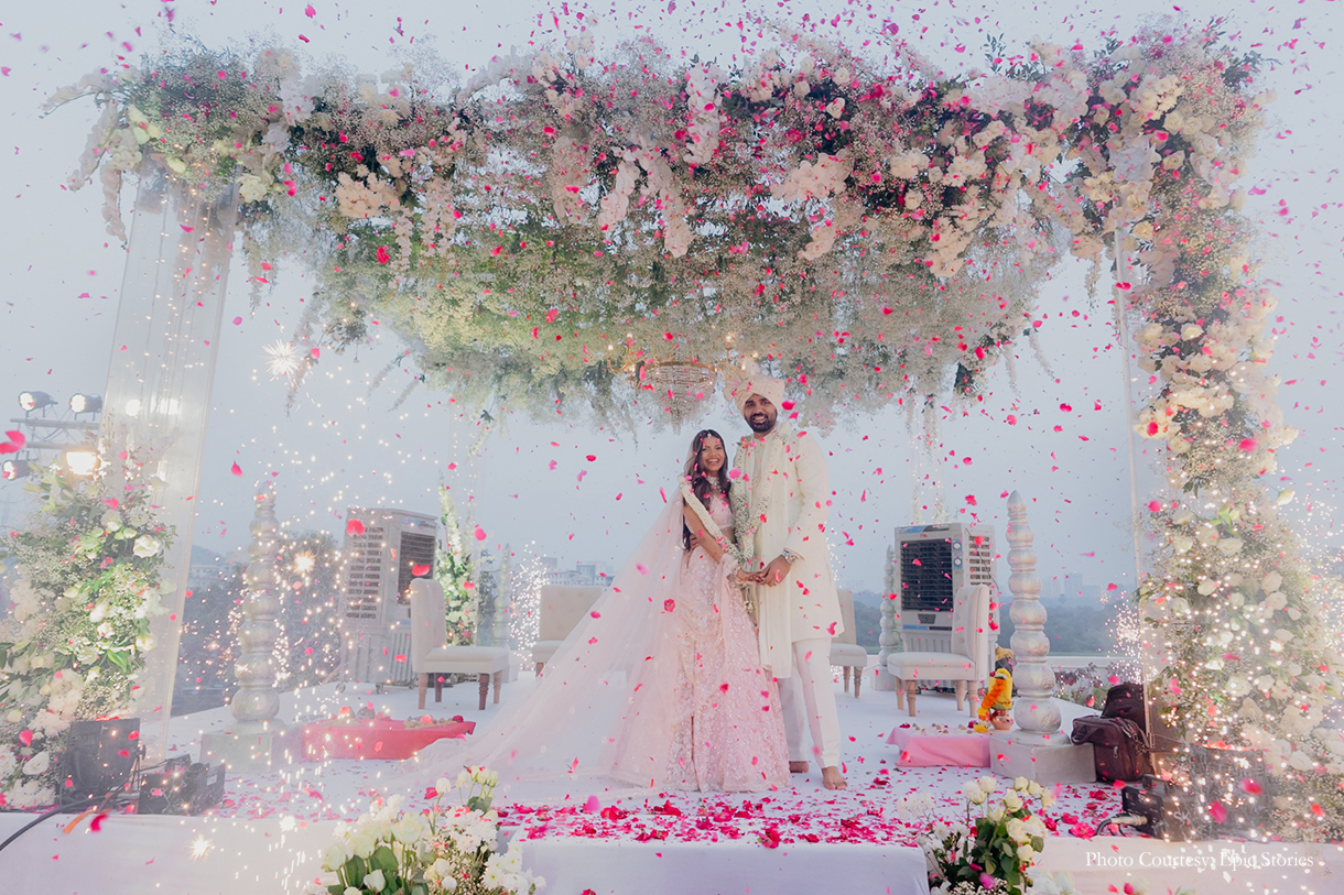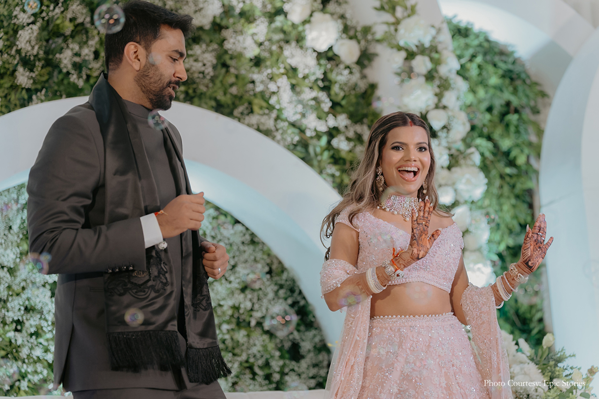 Anushka Jain, founder of interior design company Studio ACE, and Bhavya Mehta, an engineer, first met at the age of three. From thereon, life took them on different paths, but fate had different plans as they found their way back to each other to become life partners. Planning their big day and ensuring that the couple unfolded the next chapter of their lives in style was WeddingSutra Favorite – Ties N Knots Weddings & Events.