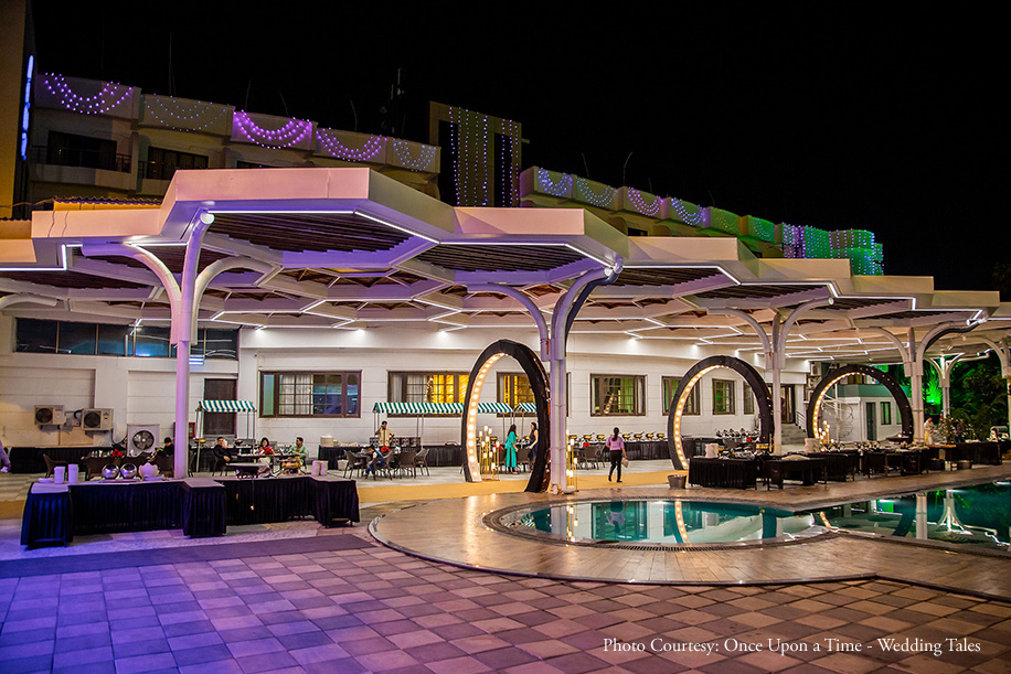 Envisioning an intimate wedding at a resort in close proximity to nature while providing multiple amenities, Mumbai was struck off the list by the couple. Jaipur was also considered but was quickly discarded for the proximity. Hence, a search was on for a location on the outskirts of Mumbai when they came across Silvassa which awed them with its lush greenery, connectivity, and sprawling spaces. Pluz Resort was the perfect match for the couple with its sprawling spaces, hospitality, flexibility, amenities and vast swimming pool.
