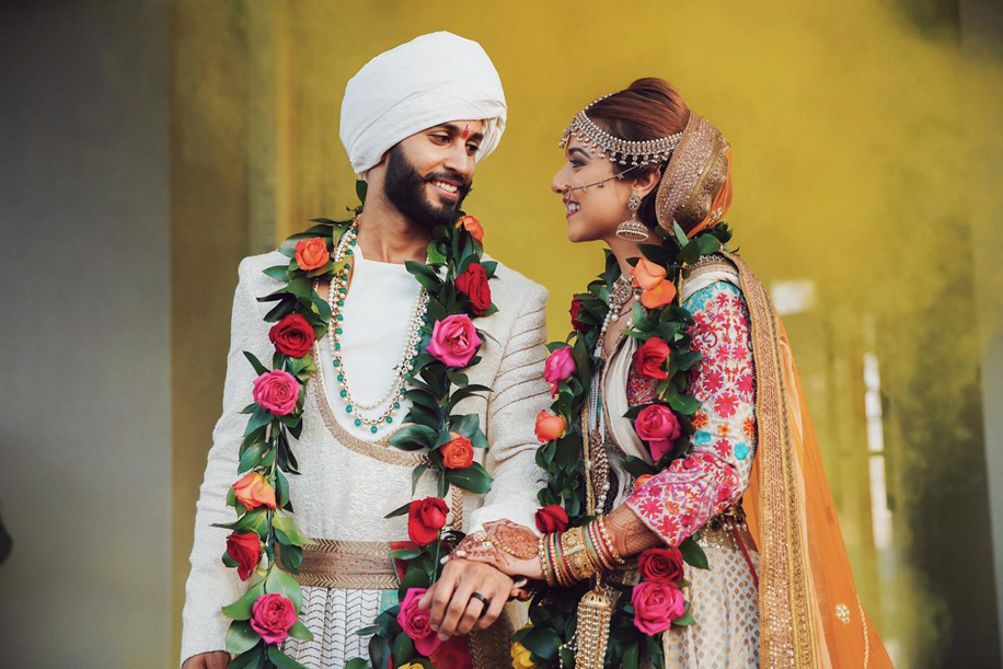 Yuval wore a clean cut black kurta and trousers with a mustard vest while Arahna’s gorgeous pink lehenga was specially poignant with parts of her mother’s wedding saree sewn into the fabric.